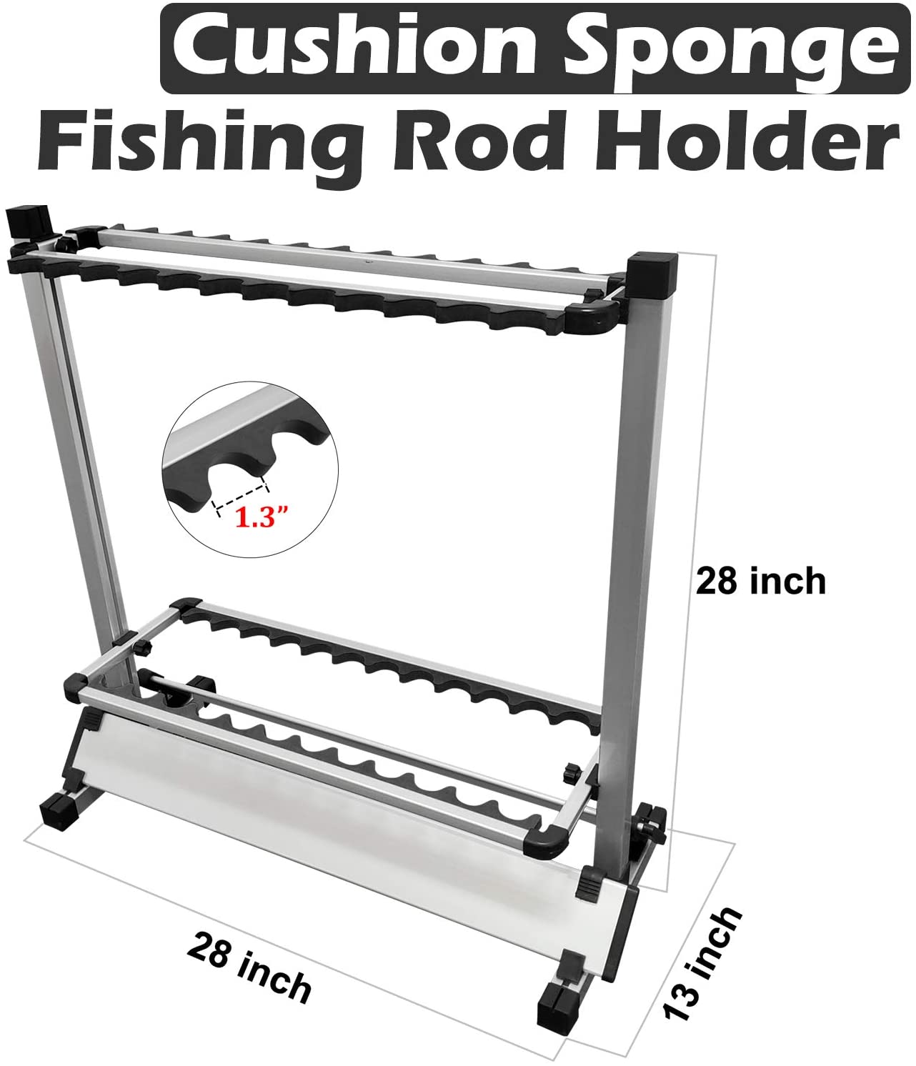 The LUXHMOX Fishing Rod Rack is the ultimate solution for anglers looking to keep their fishing gear organized and easily accessible. This innovative rod holder is designed to accommodate up to 24 fishing rods, making it an essential addition to any fishing enthusiast's garage or storage area. With dimensions of 28 inches in height, 13 inches in width, and 28 inches in length, this rack is compact yet spacious enough to hold all your rods and reels securely.
