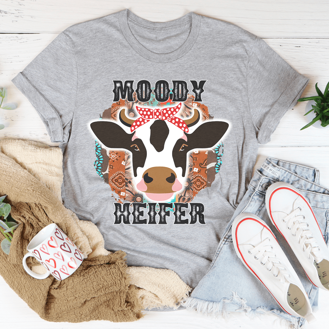 One of the standout features of the Moody Heifer T-Shirt is its exceptional quality. The fabric is not only soft but also durable, thanks to the double stitching on the neckline and sleeves. This added durability means that you can wear it confidently, knowing it will hold up to everyday wear and tear. The true-to-size fit ensures that you can find the perfect size for your body type, making it a versatile choice for everyone.
