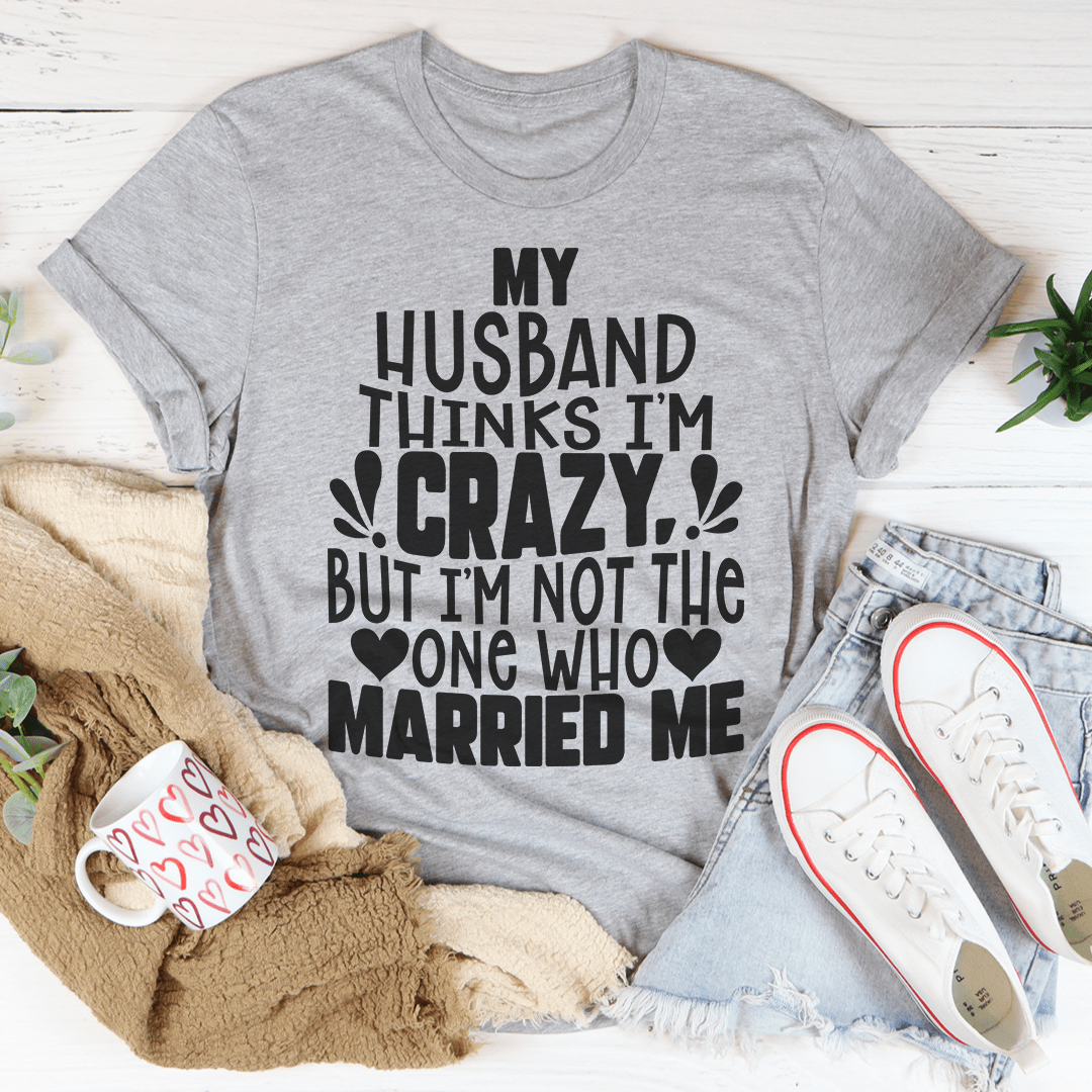 The My Husband Thinks I'm Crazy Tee is incredibly versatile. Pair it with your favorite jeans for a casual look, or dress it up with a skirt and accessories for a fun night out. The possibilities are endless, making it a staple piece in your wardrobe.