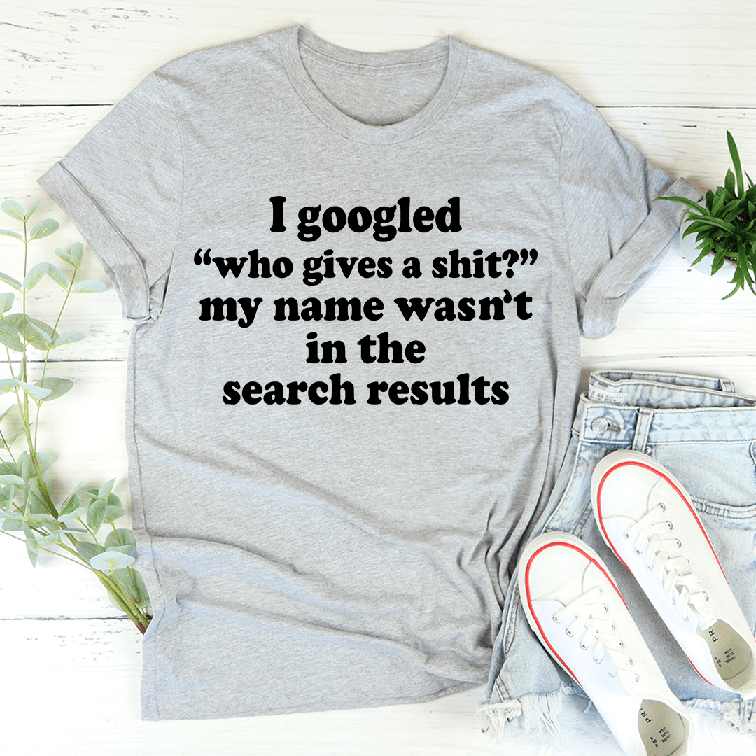 The design of the My Name Wasn't In The Search Result Tee is simple yet stylish, making it versatile enough to pair with any outfit. Dress it up with a blazer for a casual office look or wear it with jeans for a relaxed weekend vibe. The possibilities are endless!