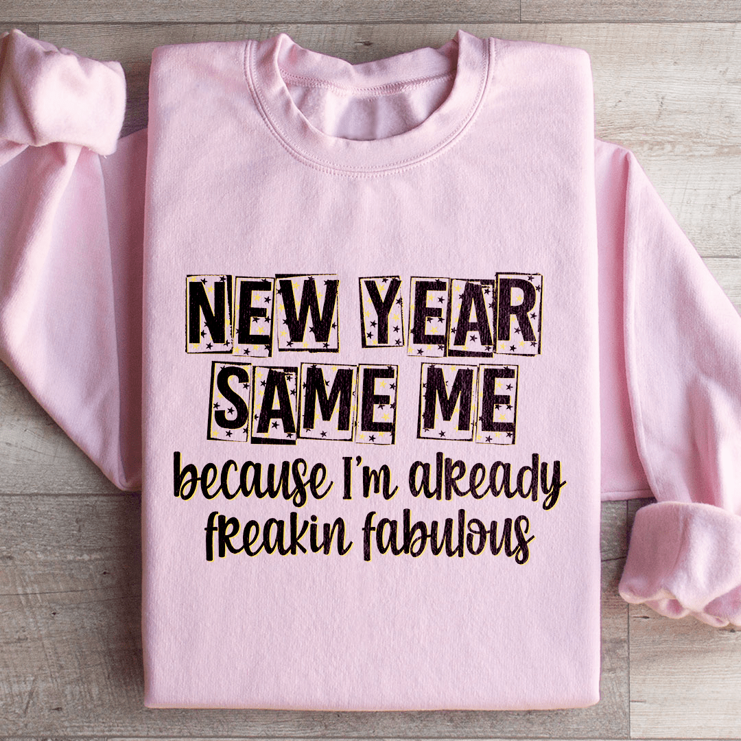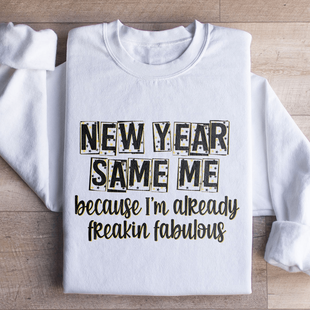 To keep your 'New Year Same Me' sweats looking fresh and vibrant, we recommend following the care instructions provided. Machine wash cold with like colors, tumble dry low, and avoid bleach to maintain the quality of the fabric and the integrity of the design.