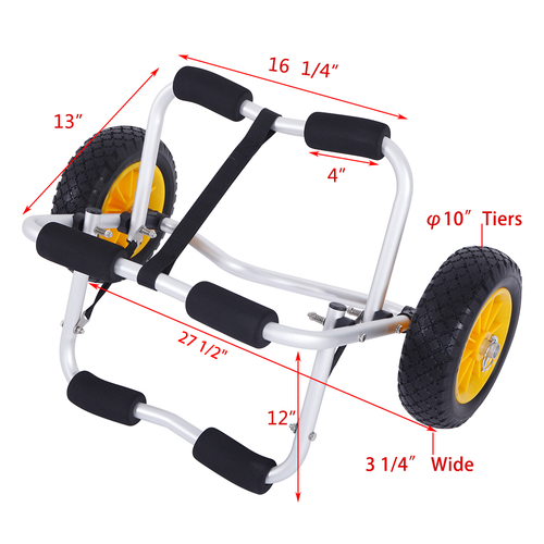 1.5MM Bend Aluminum Alloy Canoeing Trailer Cart is a great way to get your boat and gear to and from the water. Easy rolling tube tires and a light aluminum frame can handle certain loads. Adopting premium PU and aluminum alloy, it is ultra solid and durable to use. All kayak carts can be stowed flat by folding the cart frame and removing the wheels. Well, don't hesitate if you like this offer!