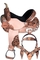 The over sized silver conchos, hand sewn silver beading, and two-tone crystal trim really make this saddle stand out and bling in the show ring. The seat is well-padded with a decorative quilt stitching on black suede for comfort and extra grip while riding. The underside is a well padded fleece for your horse's comfort.