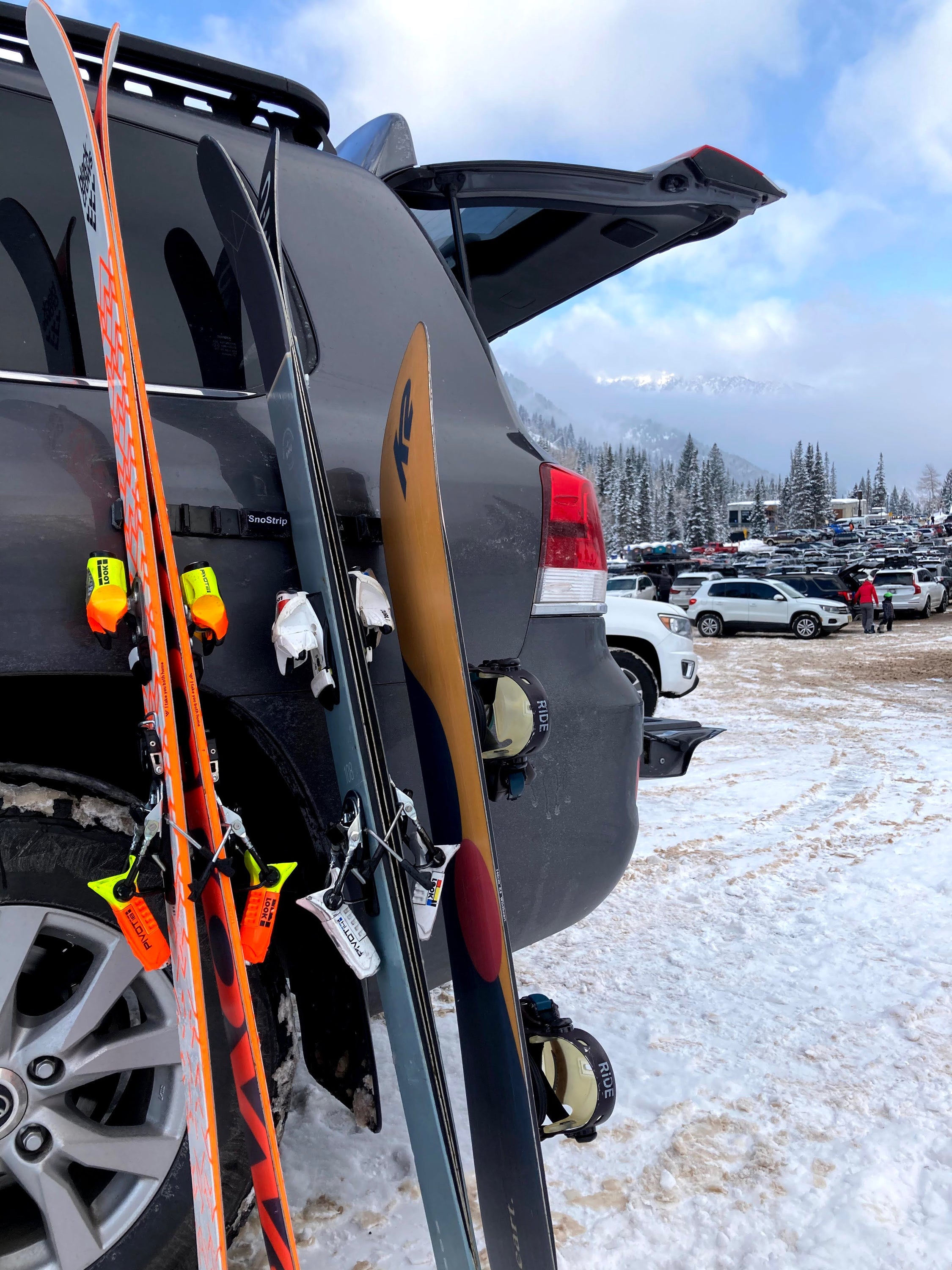 While the primary purpose of the SnoStrip™ is to hold skis and snowboards, its versatility extends far beyond winter sports. Users have successfully utilized the SnoStrip™ to lean fishing rods, paddles, hiking poles, and other outdoor equipment against their vehicles without the fear of them falling over and causing damage. This makes it an essential tool for any outdoor adventure.