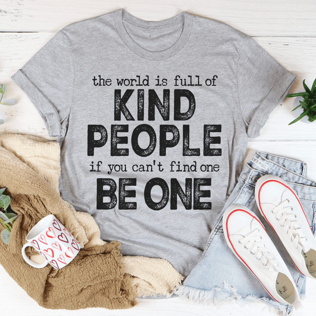 Introducing the 'The World Is Full Of Kind People If You Can't Find One Be One Tee', a perfect addition to your wardrobe that combines comfort, style, and a meaningful message. This t-shirt is not just a piece of clothing; it's a statement that encourages kindness and positivity in our daily lives. Made from 100% soft ring-spun cotton, this tee is designed to provide you with a soft touch against your skin while ensuring durability that lasts through countless washes.