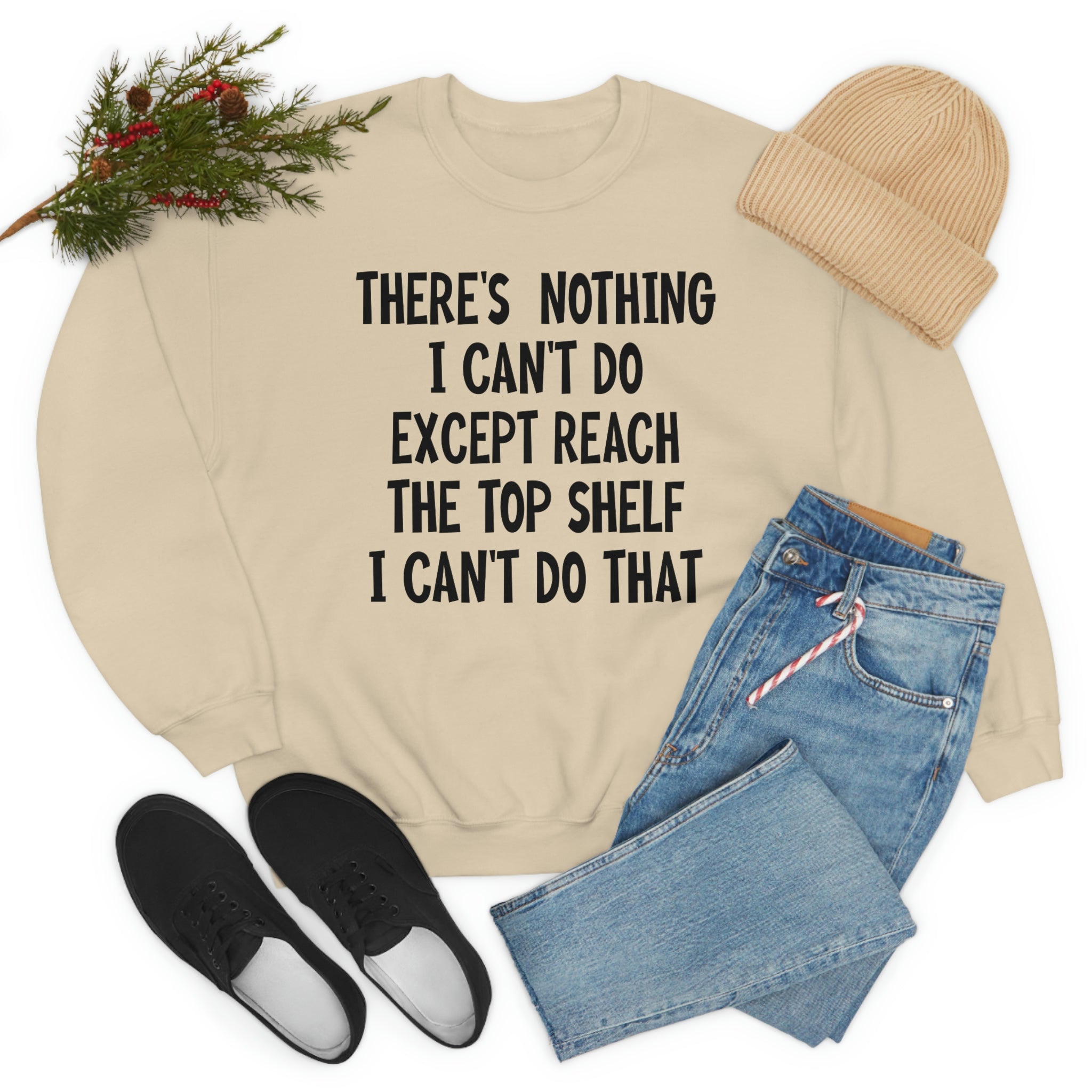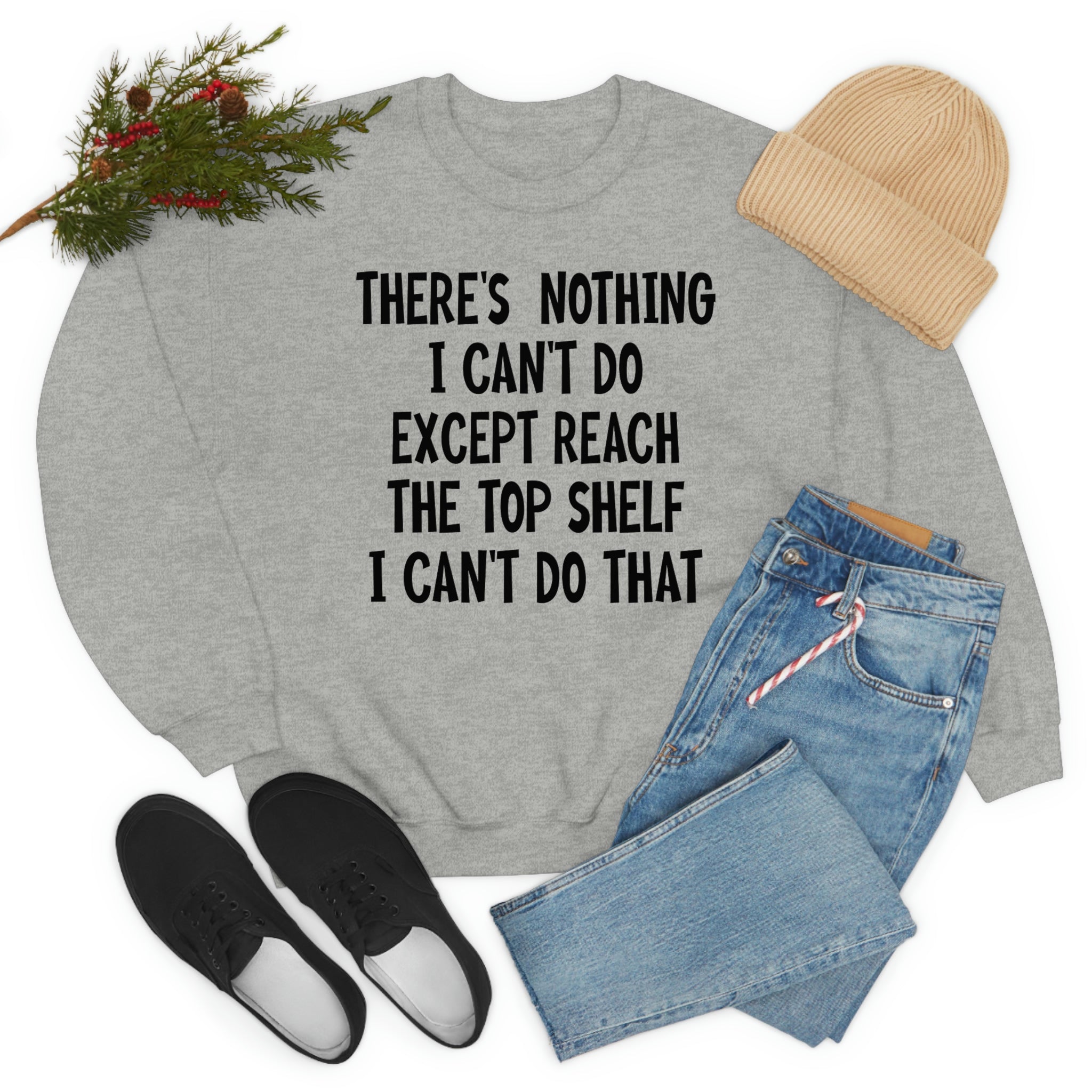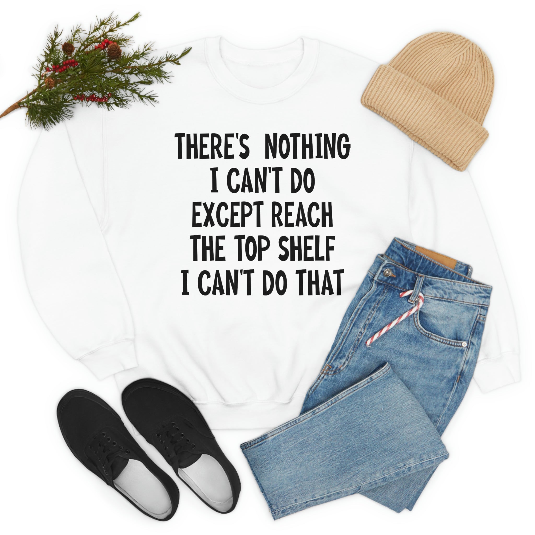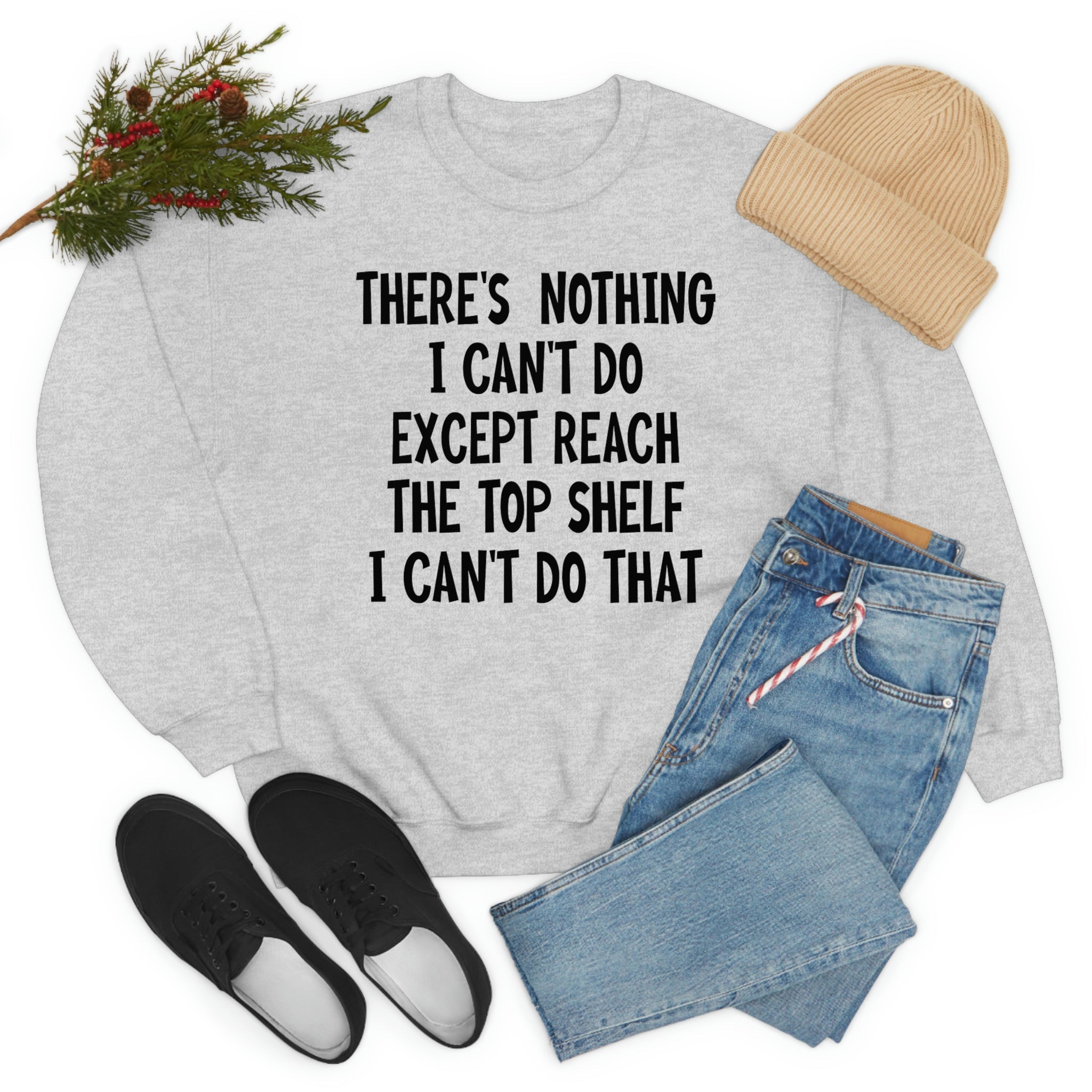 This t-shirt is not just a piece of clothing; it's a statement. With its humorous slogan, 'There Is Nothing I Can't Do Except Reach The Top Shelf', it adds a touch of personality to your wardrobe. Perfect for casual outings or as a conversation starter, this shirt is sure to bring a smile to your face and those around you.