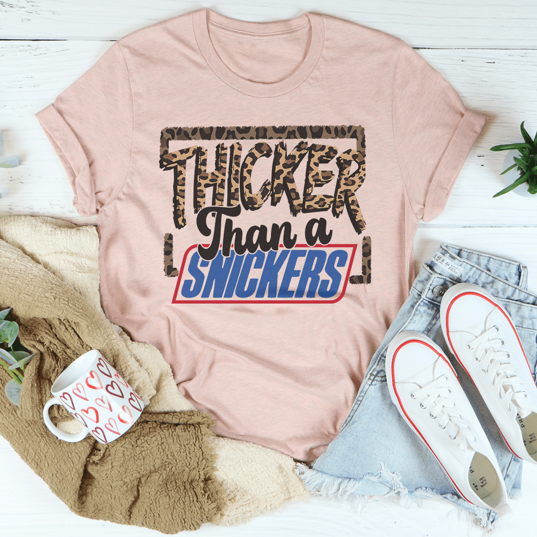 The Thicker Than A Snickers T-Shirt is incredibly versatile. It can be paired with jeans for a casual look, or dressed up with a blazer for a night out. The classic design makes it suitable for any occasion, whether you're running errands, attending a casual gathering, or simply relaxing at home. Its timeless appeal means it will remain a favorite in your wardrobe for years to come.