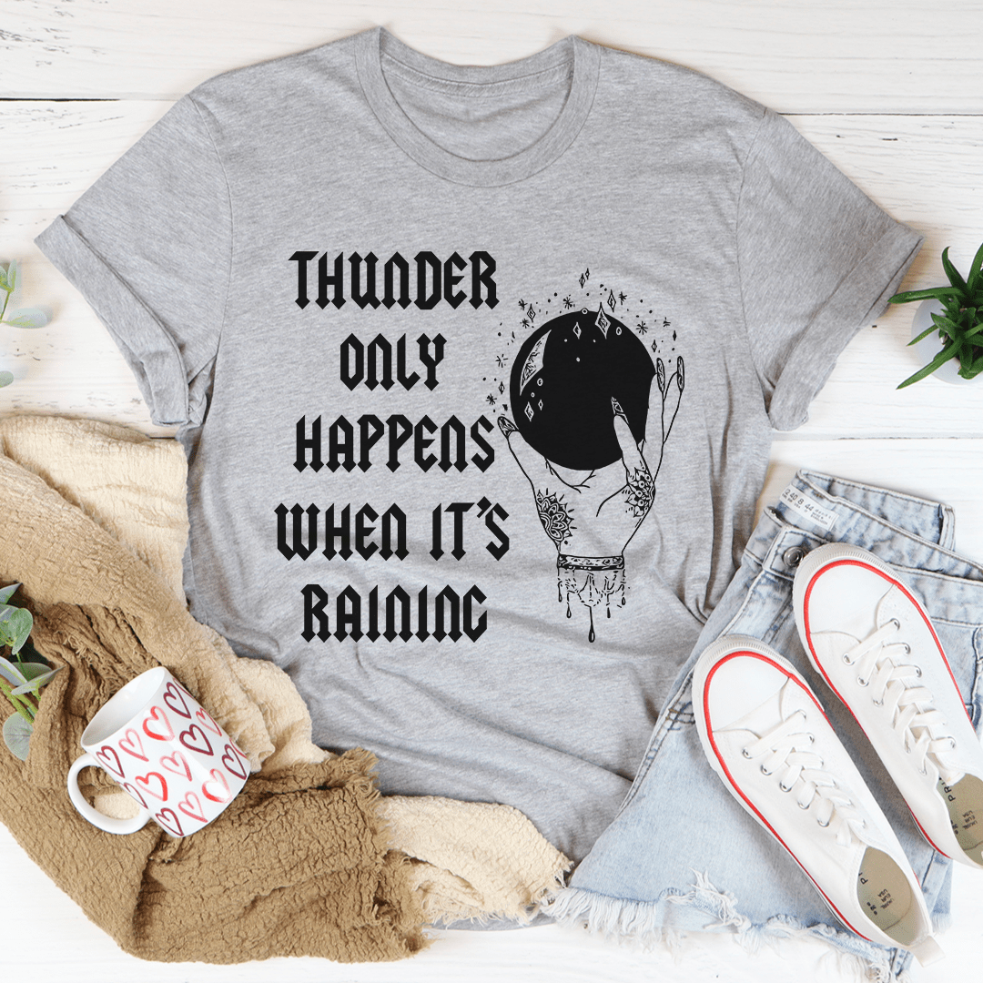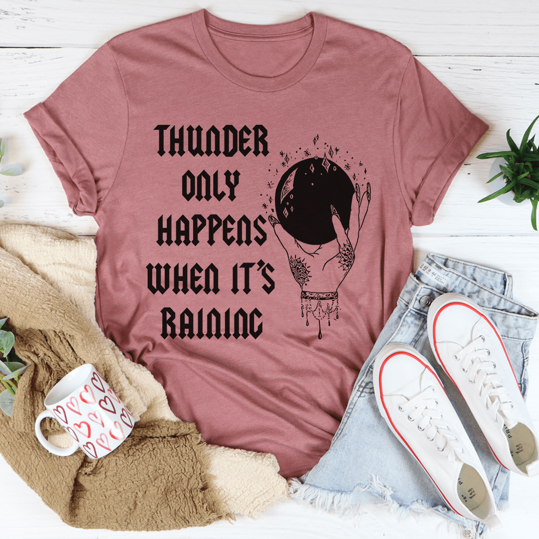 The Thunder Only Happens When It's Raining Tee is not just about comfort and quality; it also offers a versatile style that can be dressed up or down. Pair it with your favorite jeans for a casual look, or layer it under a jacket for a more polished outfit. The unique design makes it a conversation starter, allowing you to express your personality effortlessly.