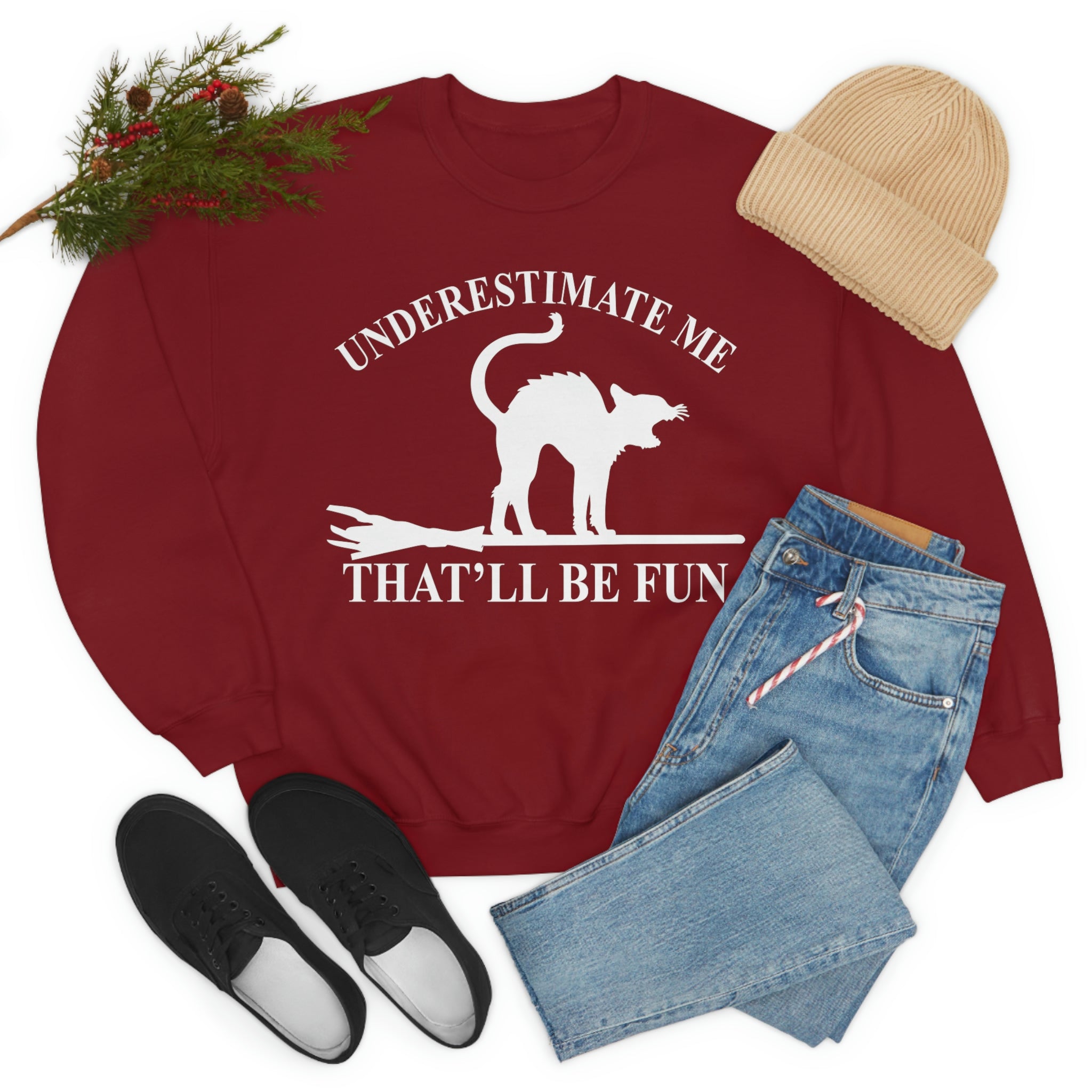 In summary, the Underestimate Me Black Cat Sweat Shirt is a stylish, comfortable, and ethically made piece of clothing that you won't want to miss out on. With its durable construction, perfect fit, and unique design, it's sure to become a staple in your wardrobe. Embrace your individuality and make a statement with this fantastic sweatshirt!