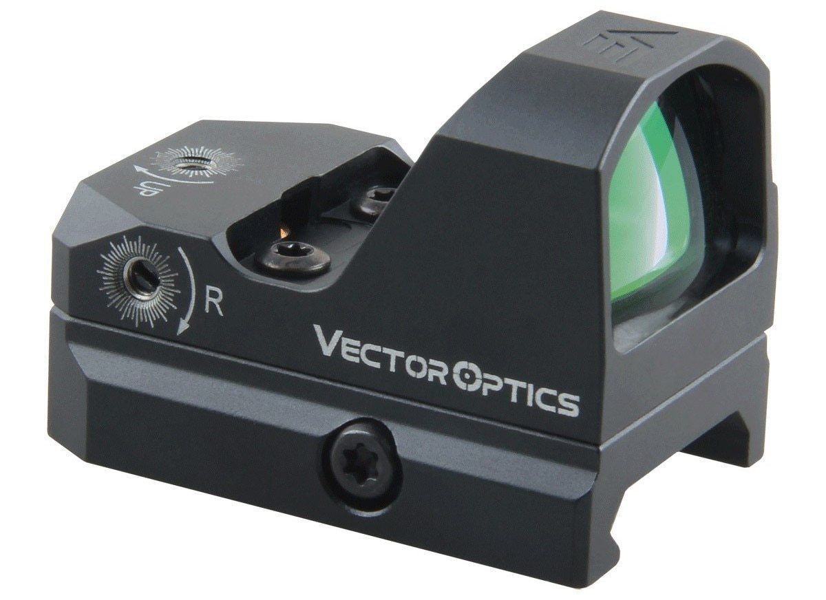 Vector Optics Frenzy 1x17x24 Red Dot Scope mounted on a firearm, showcasing its compact design and features.