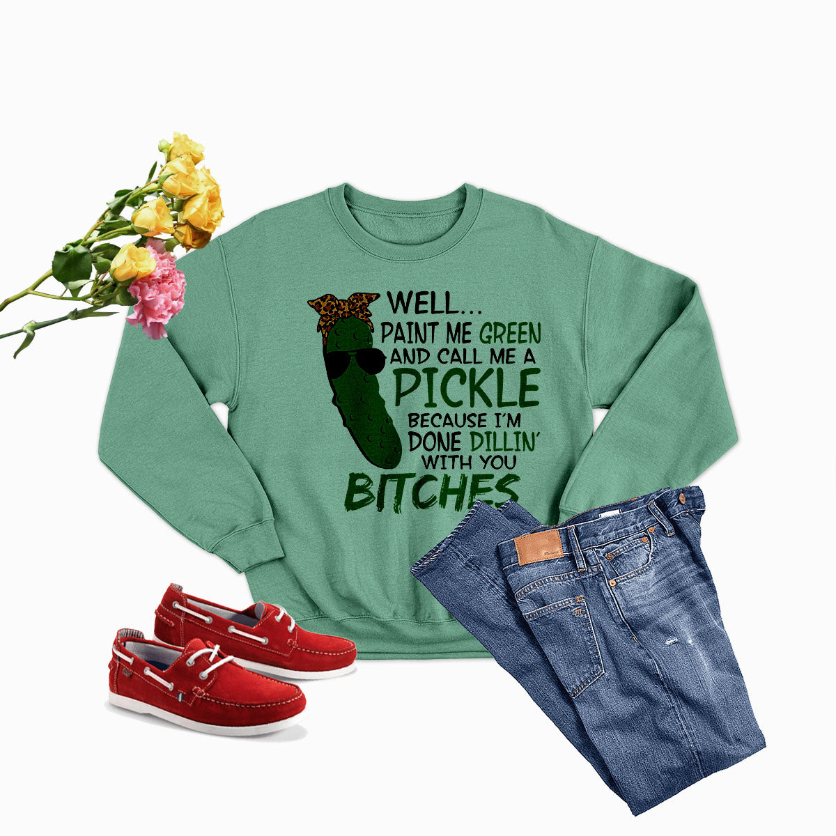 When you choose the Well Paint Me Green And Call Me A Pickle Sweat Shirt, you are not just purchasing a piece of clothing; you are investing in quality, comfort, and style. Our commitment to ethical production and customer satisfaction sets us apart from the rest. Join the community of satisfied customers who have made this sweatshirt their go-to choice for comfort and style.