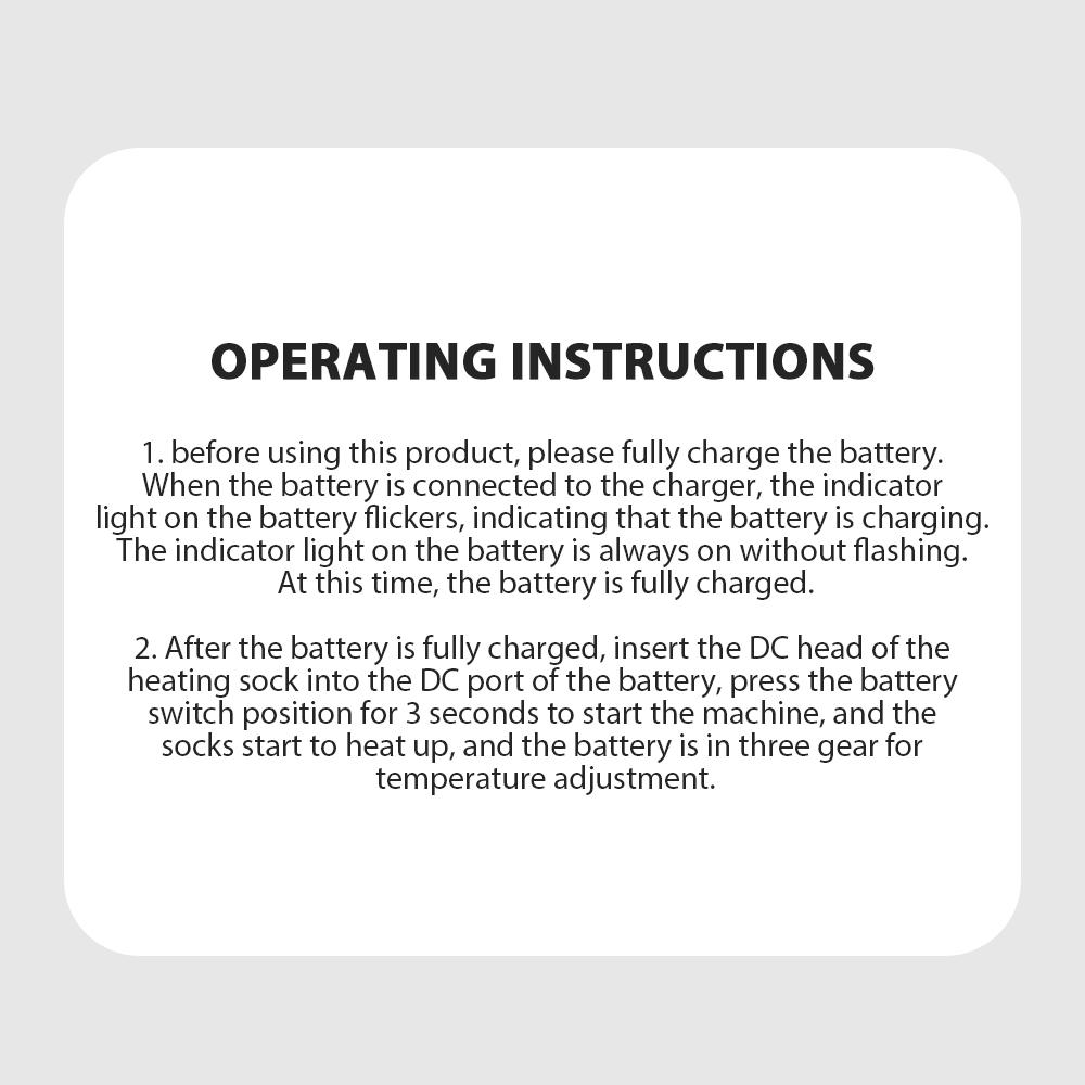 This comprehensive package ensures that you have everything you need to enjoy the warmth and comfort of our heated socks right out of the box.