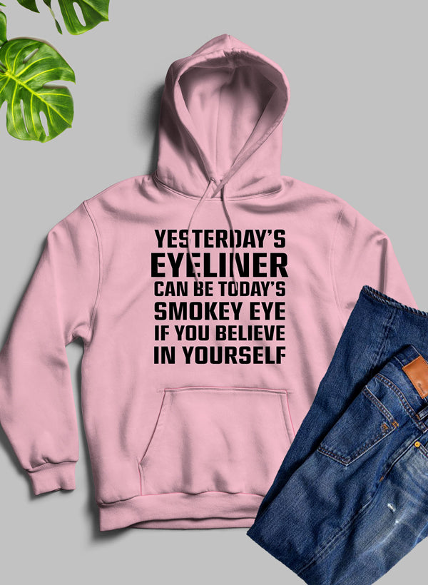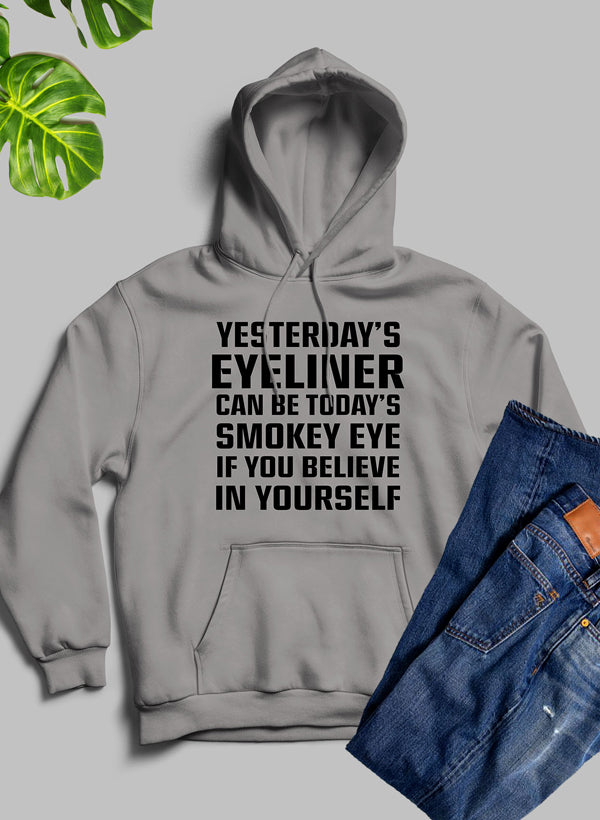 This hoodie is not just about comfort; it’s also about style. The unique design featuring the 'Yesterdays Eyeliner Todays Smokey Eye' graphic makes it a standout piece that can be paired with jeans, leggings, or joggers for a casual yet chic look. Whether you're going for a laid-back vibe or a more polished appearance, this hoodie can easily adapt to your style.