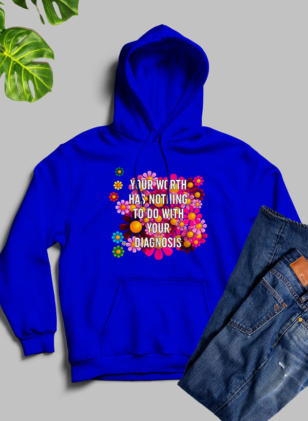 Introducing the 'Your Worth Has Nothing To Do With Your Diagnosis' hoodie, a stylish and meaningful addition to your wardrobe. This hoodie is not just a piece of clothing; it’s a statement that resonates with many. Designed by hundreds of top artists, it allows you to express your individuality while promoting a powerful message. Made from a cozy fleece blend, this hoodie is perfect for keeping warm during chilly days.