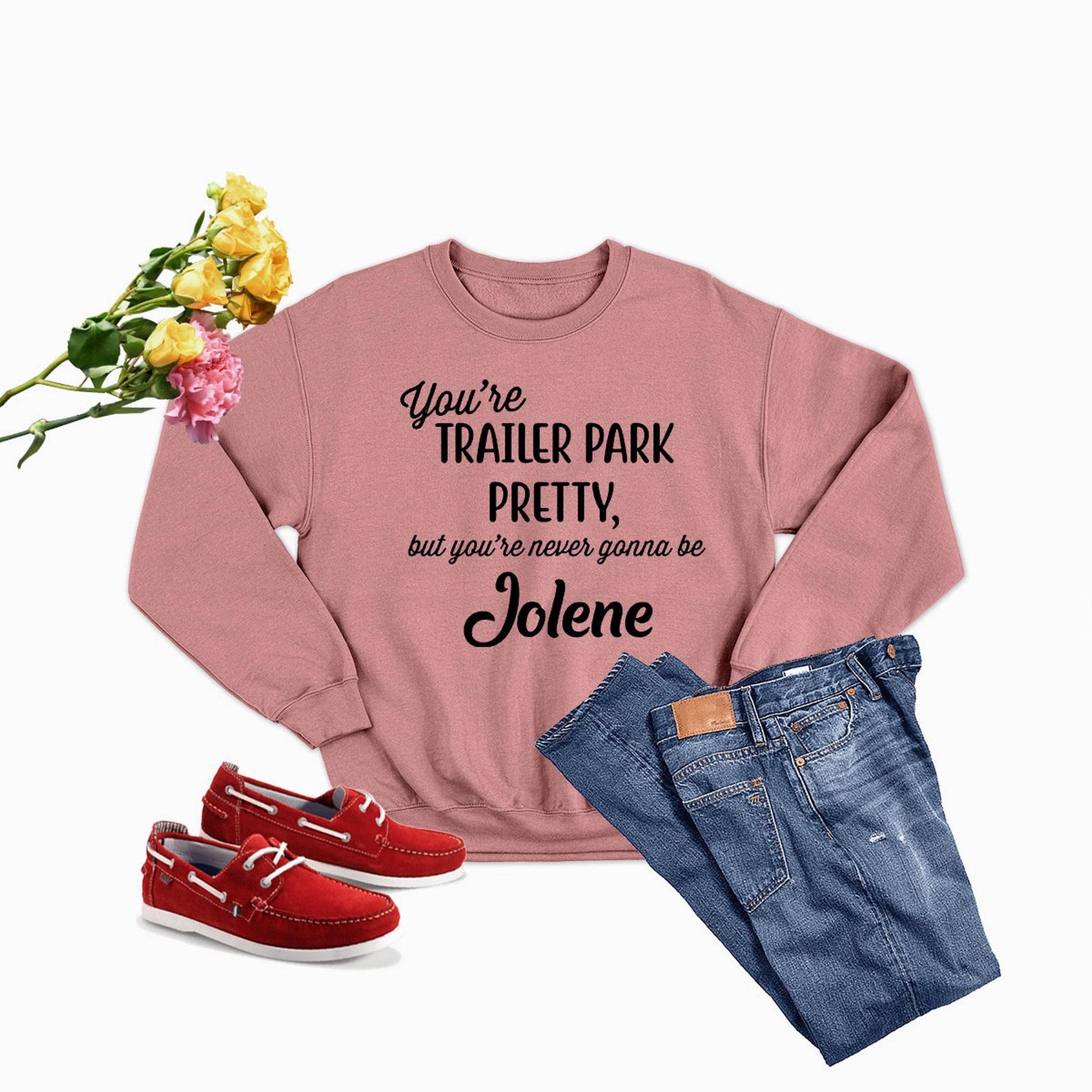 You're Trailer Park Pretty Sweat Shirt featuring a cozy fleece lining and adjustable cuffs, designed for comfort and style.