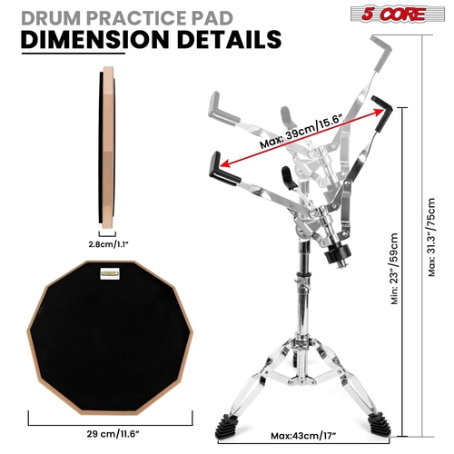 Constructed from high-quality materials, the 5 Core Drum Practice Pad Set is built to withstand frequent use. The pad is designed to endure intensive practice sessions, making it a reliable choice for drummers who are serious about their craft. The included snare stand is heavy-duty and features double-braced legs for added stability.