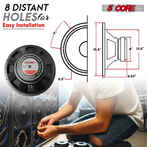 The 5Core 15 Inch Subwoofer Speaker is engineered for full-range bass, providing deep, thumping sounds that fill any space. Whether you're hosting a party, setting up a home theater, or simply enjoying your favorite tunes, this speaker will deliver an immersive audio experience that captivates your audience. The speaker's impressive specifications include a 2.5” Kapton voice coil and an 8 Ohm impedance, which work together to minimize distortion and produce pristine sound quality.