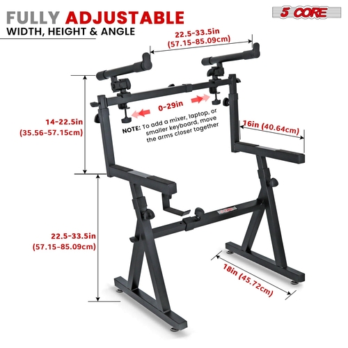 The 5Core 2 Tier Keyboard Stand is the perfect solution for musicians looking for a reliable and adjustable stand for their instruments. This heavy-duty electric keyboard stand is designed to accommodate various keyboard sizes and weights, making it an essential addition to any music setup.