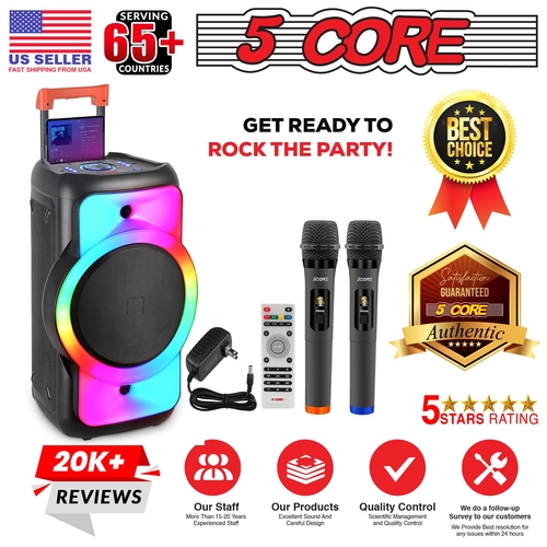 This portable PA speaker is designed for easy transport, featuring wheels and a retractable handle for mobility between indoor and outdoor settings. The rechargeable battery provides up to 6 hours of continuous entertainment, ensuring that your party never has to stop. Whether you're at a BBQ, campfire, or corporate event, the 5Core Bluetooth Party Speaker is the perfect companion.