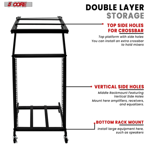 Durability is a key aspect of the 5Core DJ Mixer Stand. Constructed from high-quality metal, this stand is built to withstand the rigors of professional use. It has a maximum load capacity of 220 lbs for the bottom rack mount and 110 lbs for the upper platform, ensuring that it can support even the most expensive audio equipment safely. This robust construction guarantees a long lifespan, making it a worthwhile investment for any audio professional.