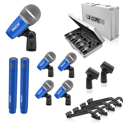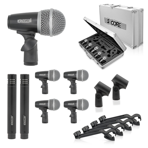 Introducing the 5Core Drum Mic Kit, a comprehensive 7-piece microphone set designed for capturing the full spectrum of sound from your drum kit. This kit includes specialized mics for kick bass, toms, snare, and overhead recording, ensuring that every beat and nuance is captured with professional clarity.