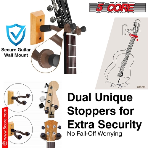 Crafted from high-quality wood and metal, the 5Core Guitar Wall Mount Hanger is built to last. The sturdy materials provide exceptional stability, ensuring that your instrument is securely held in place. The non-slip soft arms covering protects your guitar from scratches and damage, making it a reliable choice for any musician. Whether you have a heavy electric guitar or a delicate ukulele, this wall mount can support them all with ease.