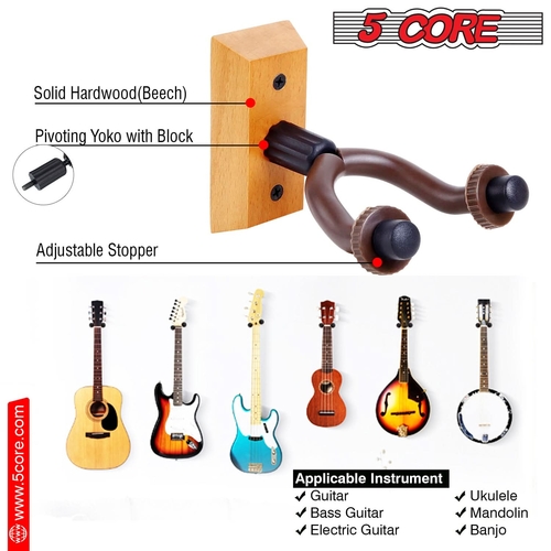 The 5Core Guitar Wall Mount Hanger is truly universal, designed to accommodate all types of headstocks. Whether you play an acoustic guitar, electric guitar, bass, violin, mandolin, or ukulele, this wall mount is the perfect solution for displaying your instruments. Its versatile design ensures that you can use it for any string instrument you own, making it a must-have for any musician.