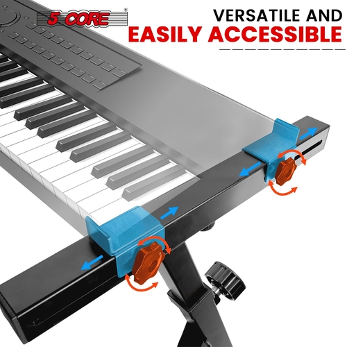 The 5Core Keyboard Stand features a remarkable height adjustment range from 22.5 inches to 38.58 inches, allowing you to find the perfect playing position. Additionally, the width can be adjusted between 21.5 inches and 36.5 inches, accommodating most keyboard sizes. This flexibility ensures that you can play comfortably, whether you're seated on a bench or standing during a performance.