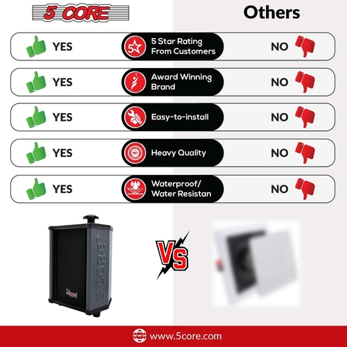For those interested in the technical details, the 5Core Outdoor Speakers boast impressive specifications: