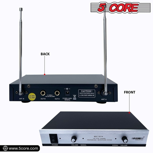 5Core Wireless Microphone VHF Handheld with dual channel receiver, ideal for karaoke and public events.