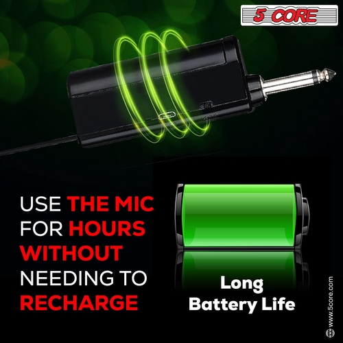 The 5Core Wireless Microphone is equipped with a rechargeable battery that provides over 6 hours of playtime on a single charge. This means you can enjoy extended use without the need for constant battery replacements. The rugged construction of the microphone ensures it is both durable and scratch-resistant, making it a reliable choice for any event.