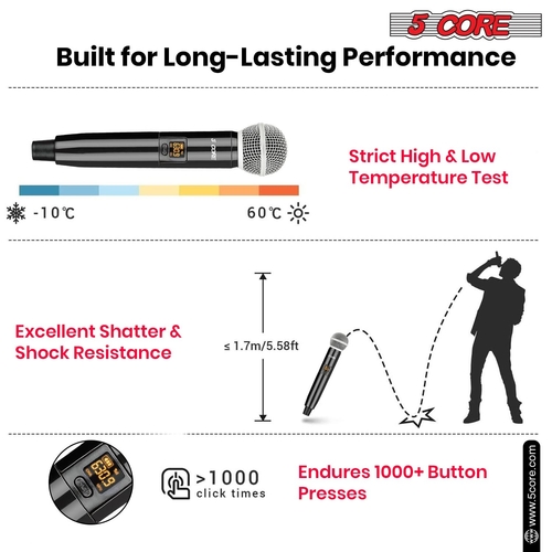 Introducing the 5Core Wireless Microphones VHF Microfonos Inalambricos Professional, the ultimate solution for anyone seeking high-quality sound without the hassle of cords. This wireless handheld microphone is engineered for long-distance performance, boasting a range of over 165 feet. Whether you're on stage, at a conference, or hosting a karaoke night, this microphone ensures your voice is heard loud and clear.