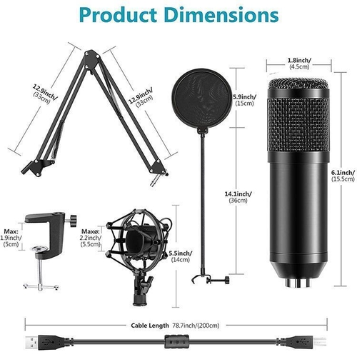 Podcast Condenser Microphone with Professional Sound Chipset for PC Karaoke/YouTube/Gaming Record, Arm Stand/Shock Mount (Black) Professional Studio Broadcasting & Recording Microphone Set