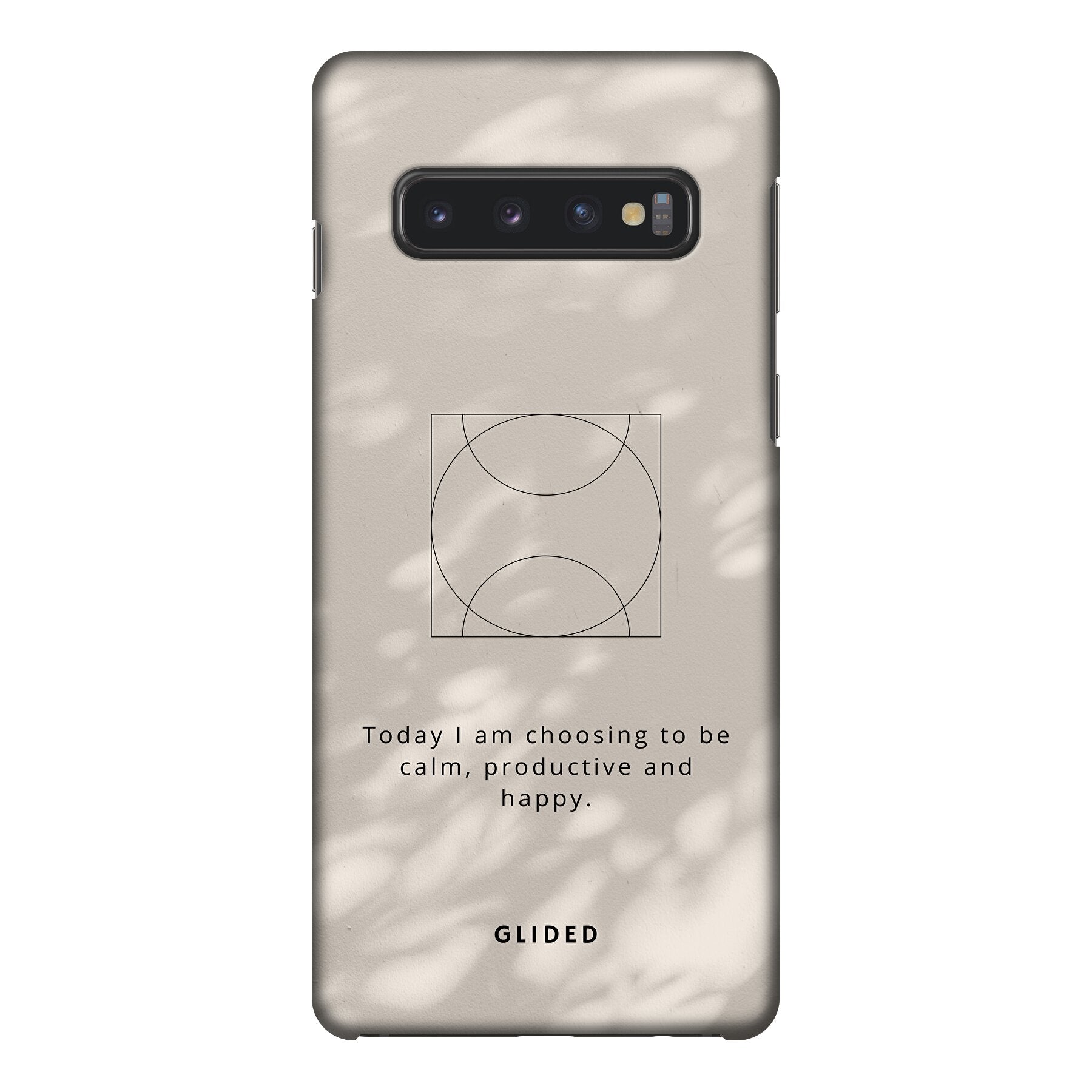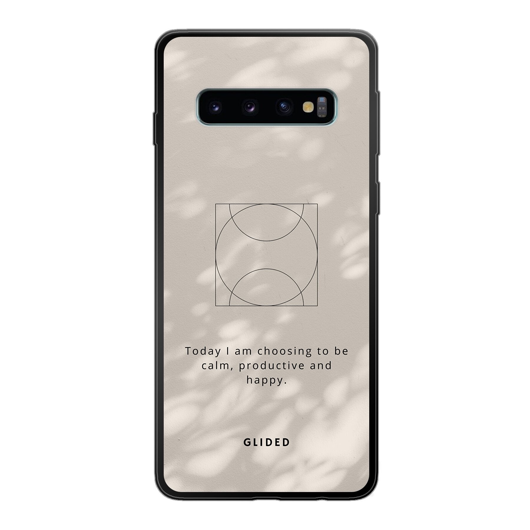 Tauche ein in die beruhigende Atmosphäre mit unserer 'Affirmation' Handyhülle für das Samsung Galaxy S10. Diese Hülle ist nicht nur ein praktischer Schutz für dein Smartphone, sondern auch eine tägliche Erinnerung, eine positive Einstellung zu wählen. Der inspirierende Spruch 'Today I am choosing to be calm, productive, and happy' ist auf einem ästhetischen Hintergrund abgebildet, der sowohl motivierend als auch stilvoll ist.