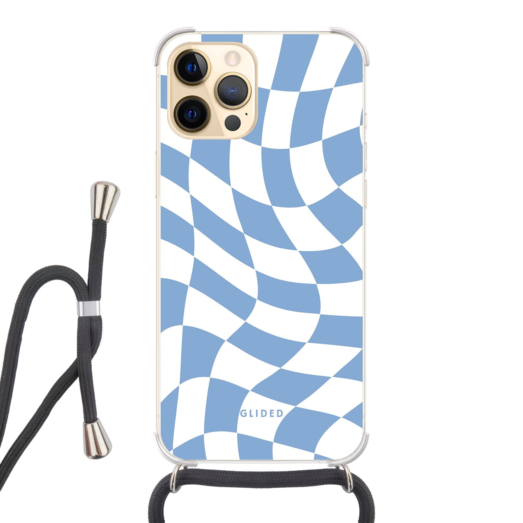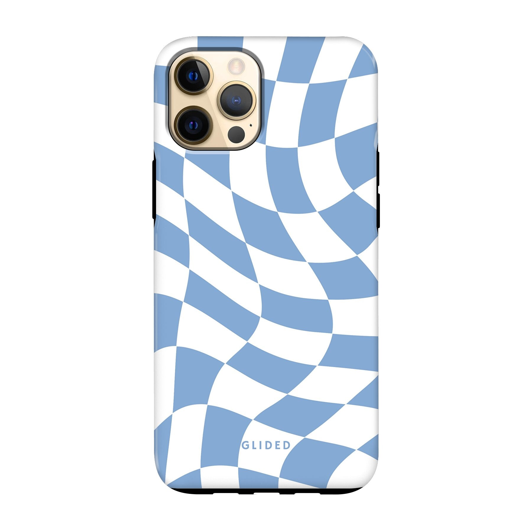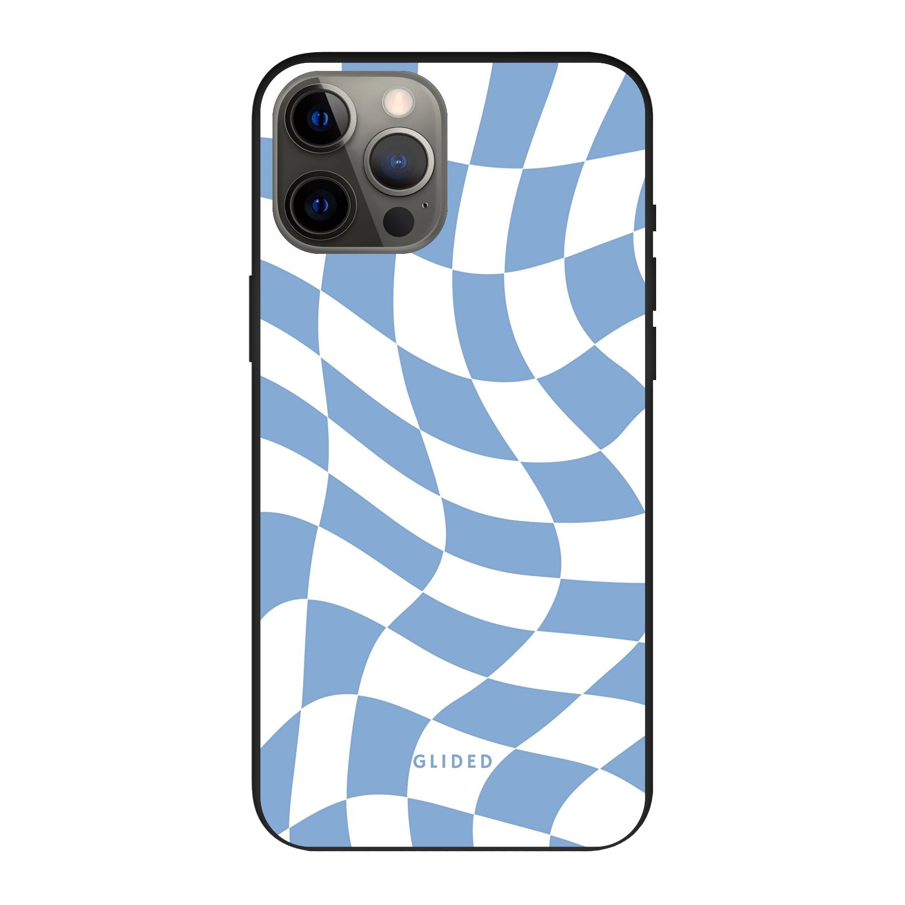 Elegante Blue Chess iPhone 12 Pro Max Hülle mit Schachbrettmuster in verschiedenen Blautönen, idealer Schutz und stilvolles Design.