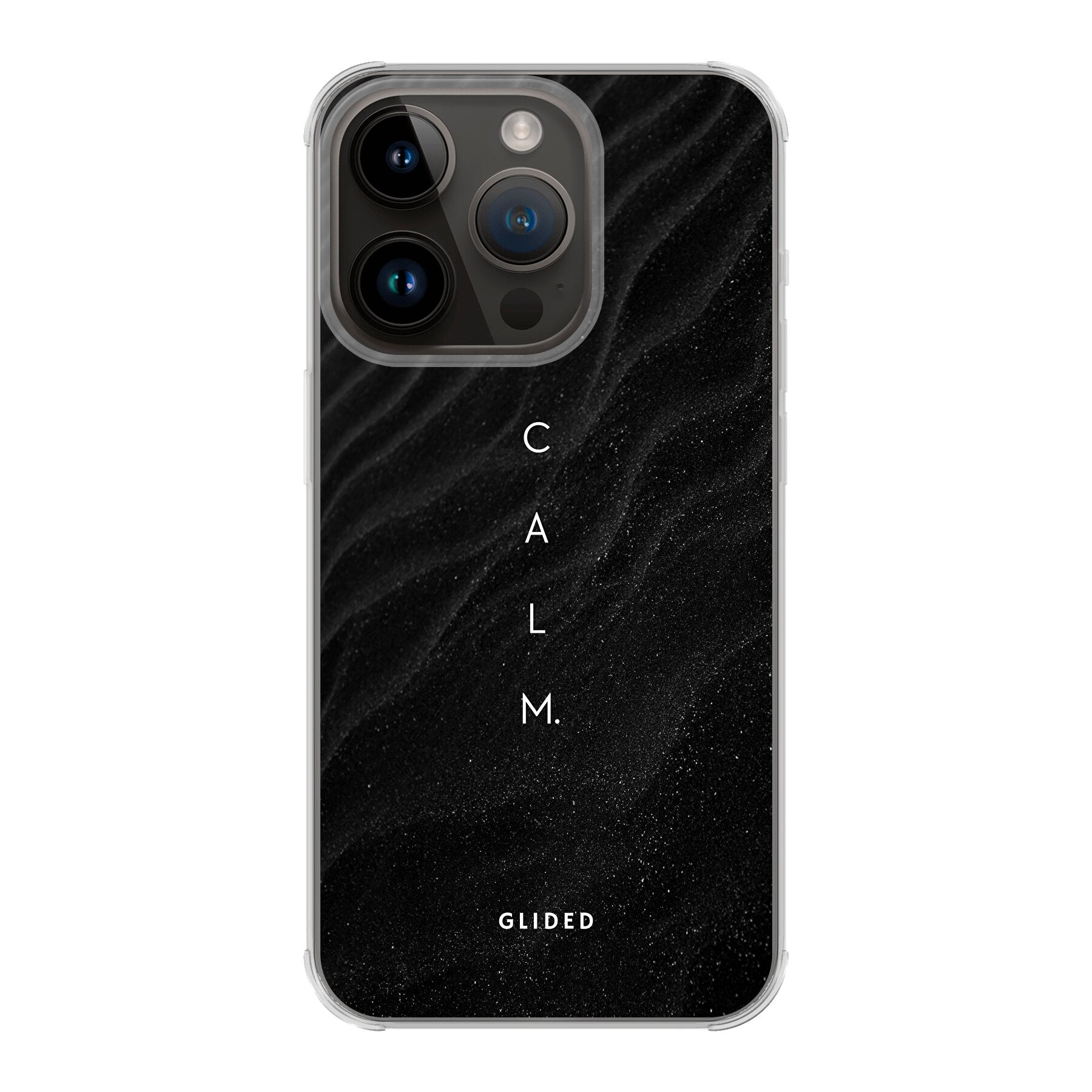 Das Design der 'Calm' Handyhülle ist bewusst schlicht gehalten, um eine beruhigende Ästhetik zu schaffen. Der klare Schriftzug "Calm" hebt sich dezent vom Hintergrund ab und vermittelt ein Gefühl von Frieden und Gelassenheit. Diese Hülle ist ideal für Menschen, die einen minimalistischen Lebensstil schätzen und gleichzeitig ihr iPhone 14 Pro schützen möchten.
