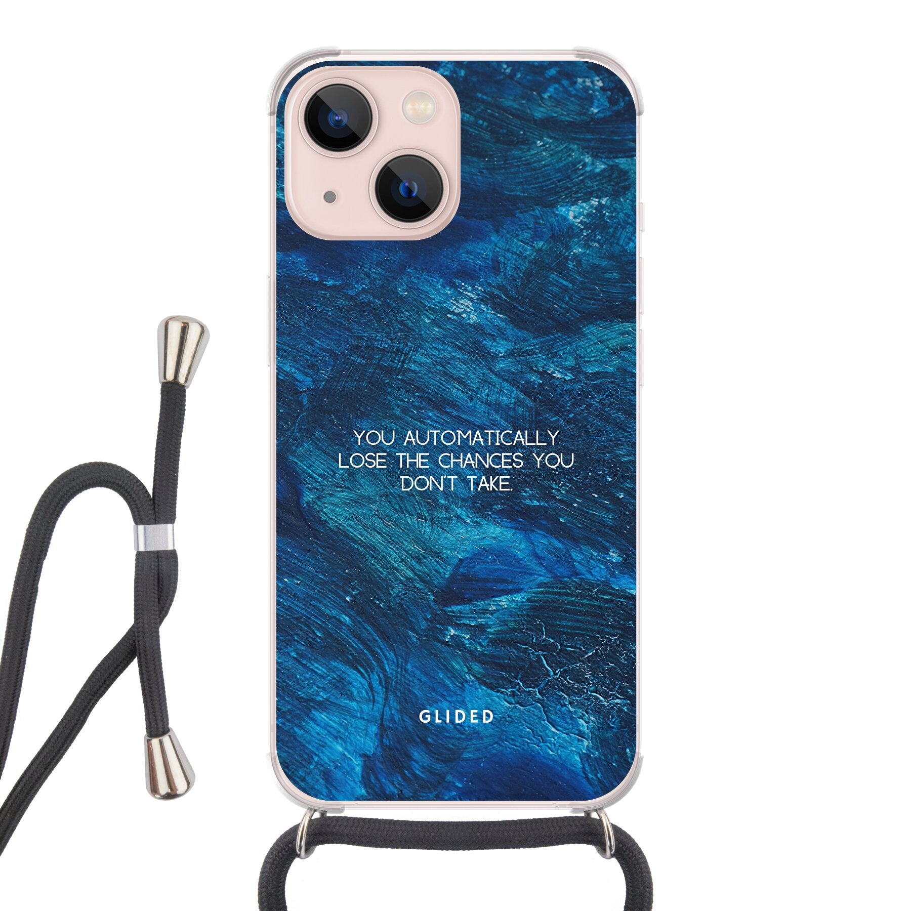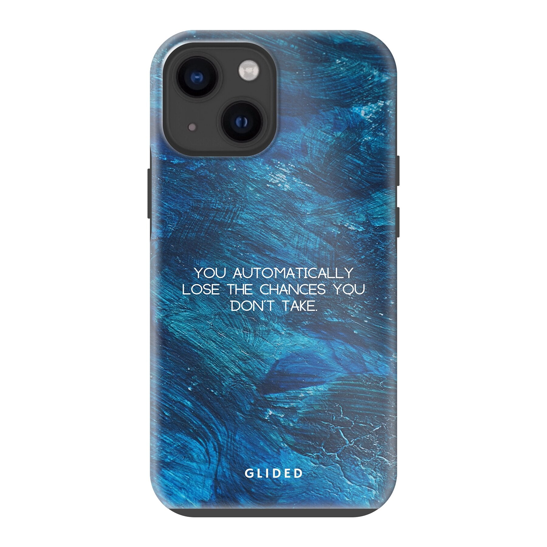 Entdecke die 'Chances' Handyhülle für das iPhone 13 mini, die nicht nur dein Gerät schützt, sondern auch eine kraftvolle Botschaft vermittelt. Mit dem motivierenden Spruch "You automatically lose the chances you don't take" inspiriert diese Hülle dich, mutig zu sein und neue Möglichkeiten zu ergreifen. Sie ist der perfekte Begleiter für alle, die bereit sind, Risiken einzugehen und ihr Leben aktiv zu gestalten.