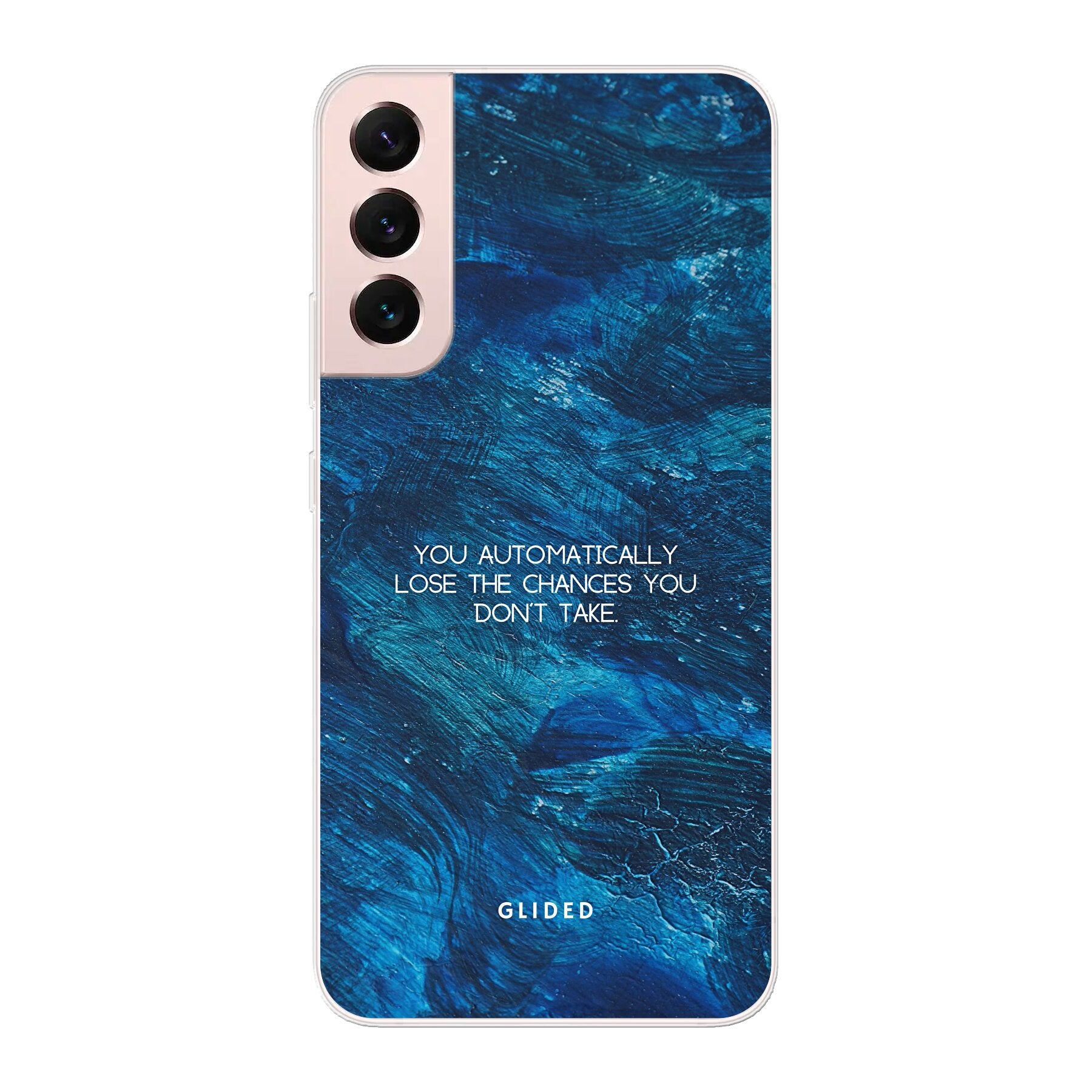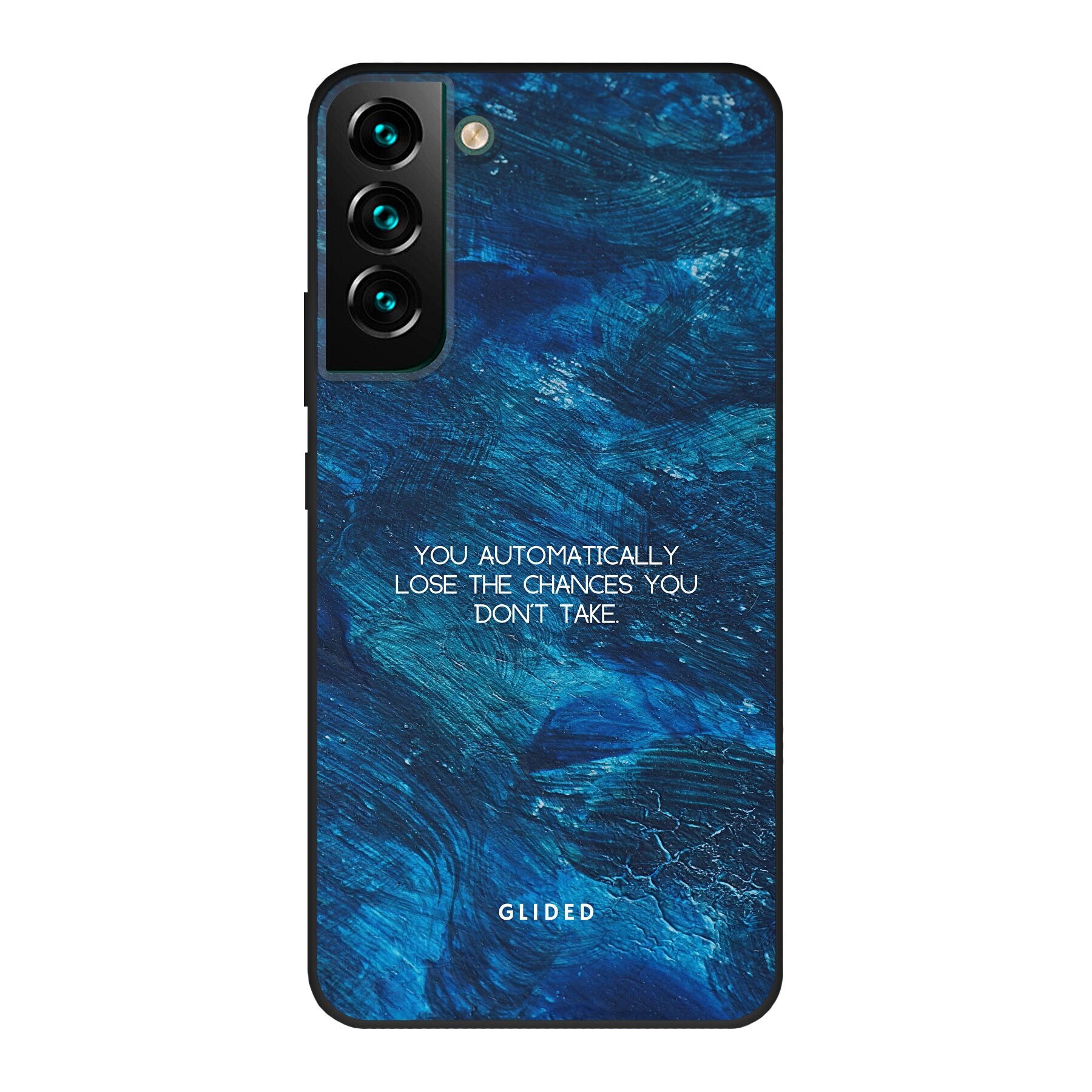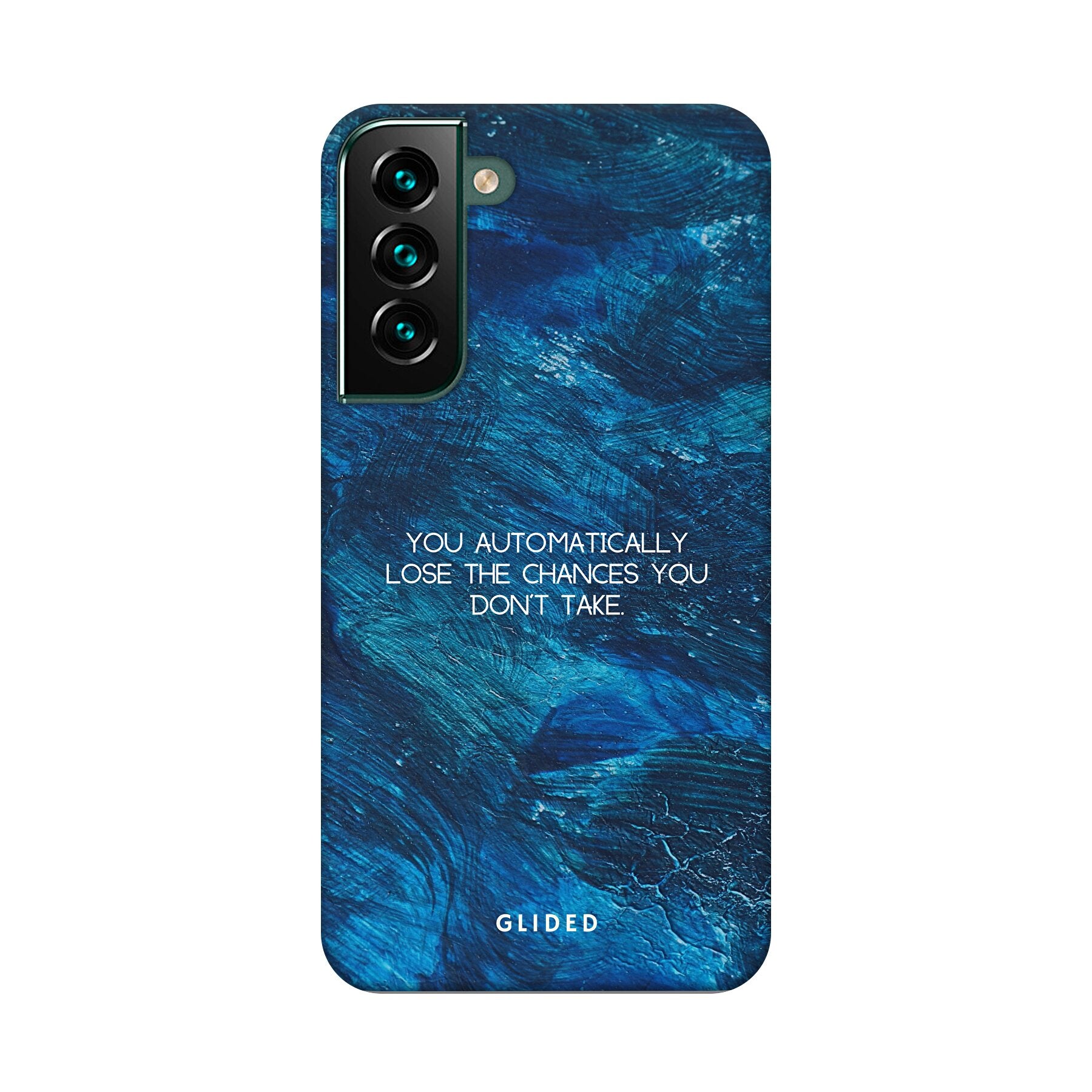 Samsung Galaxy S22 Plus Handyhülle 'Chances' mit inspirierendem Spruch auf dunkelblauem Hintergrund, bietet Schutz und Stil.