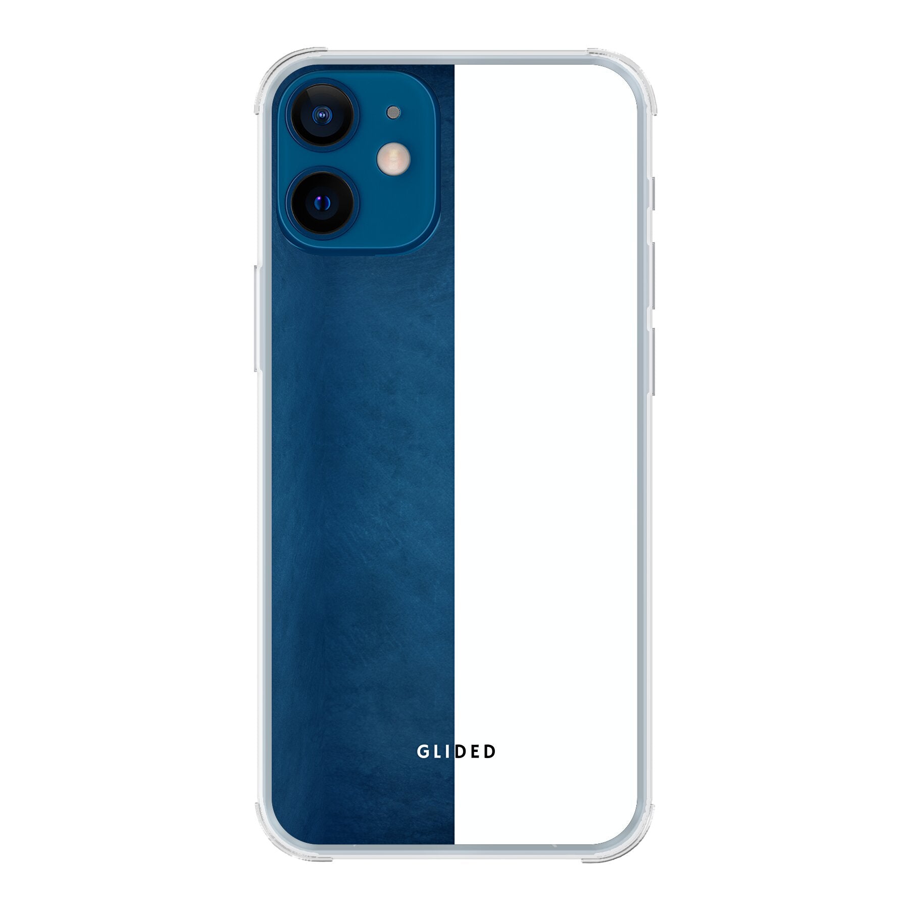Die "Contrast" Hülle besticht durch ihr kühles Blau und strahlendes Weiß, die sich harmonisch aufteilen und einen fesselnden visuellen Kontrast schaffen. Dieses Design ist nicht nur ästhetisch ansprechend, sondern auch ein Ausdruck deiner Persönlichkeit und deines Stils. Mit dieser Hülle wird dein iPhone 12 mini zum echten Hingucker.