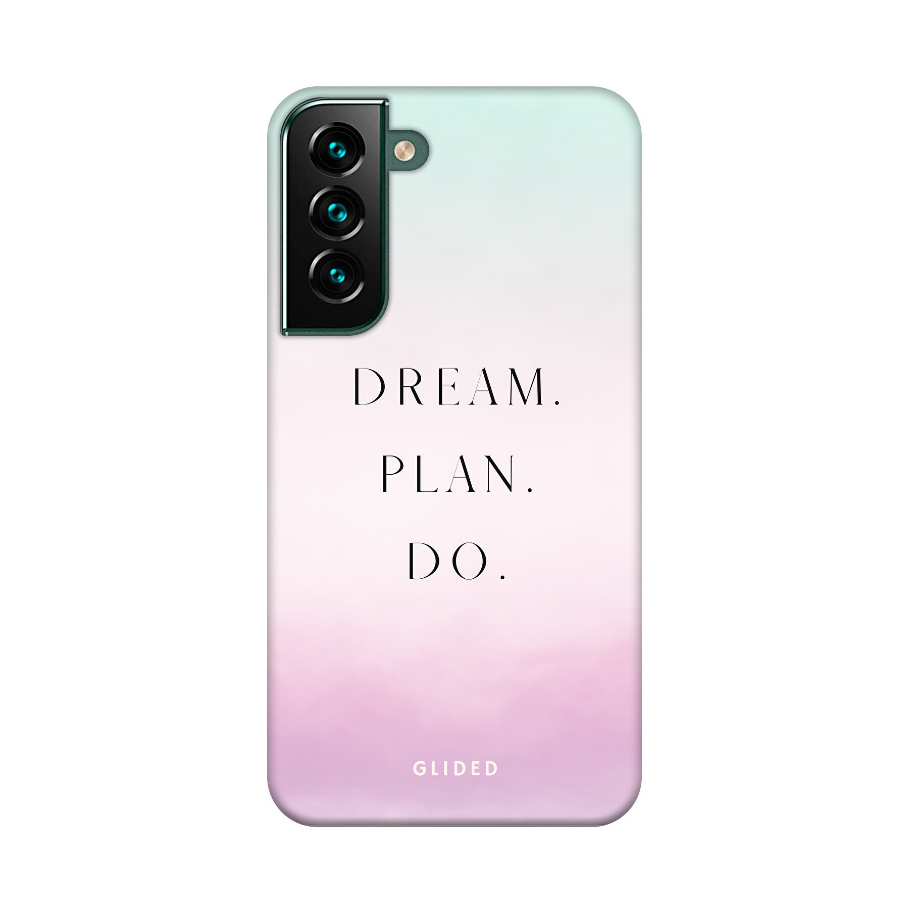 Entdecke die inspirierende "Dream" Handyhülle für dein Samsung Galaxy S22 Plus, die nicht nur als Schutz dient, sondern auch als tägliche Motivation. Mit dem kraftvollen Spruch "Dream, plan, do" erinnert dich diese Hülle daran, dass Träume durch Planung und Handeln Realität werden können. Sie ist die perfekte Kombination aus Funktionalität und Inspiration, die dir hilft, deine Ziele im Blick zu behalten.