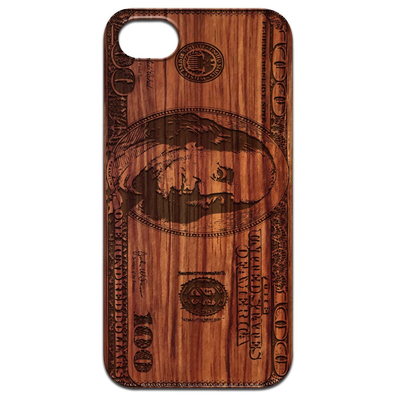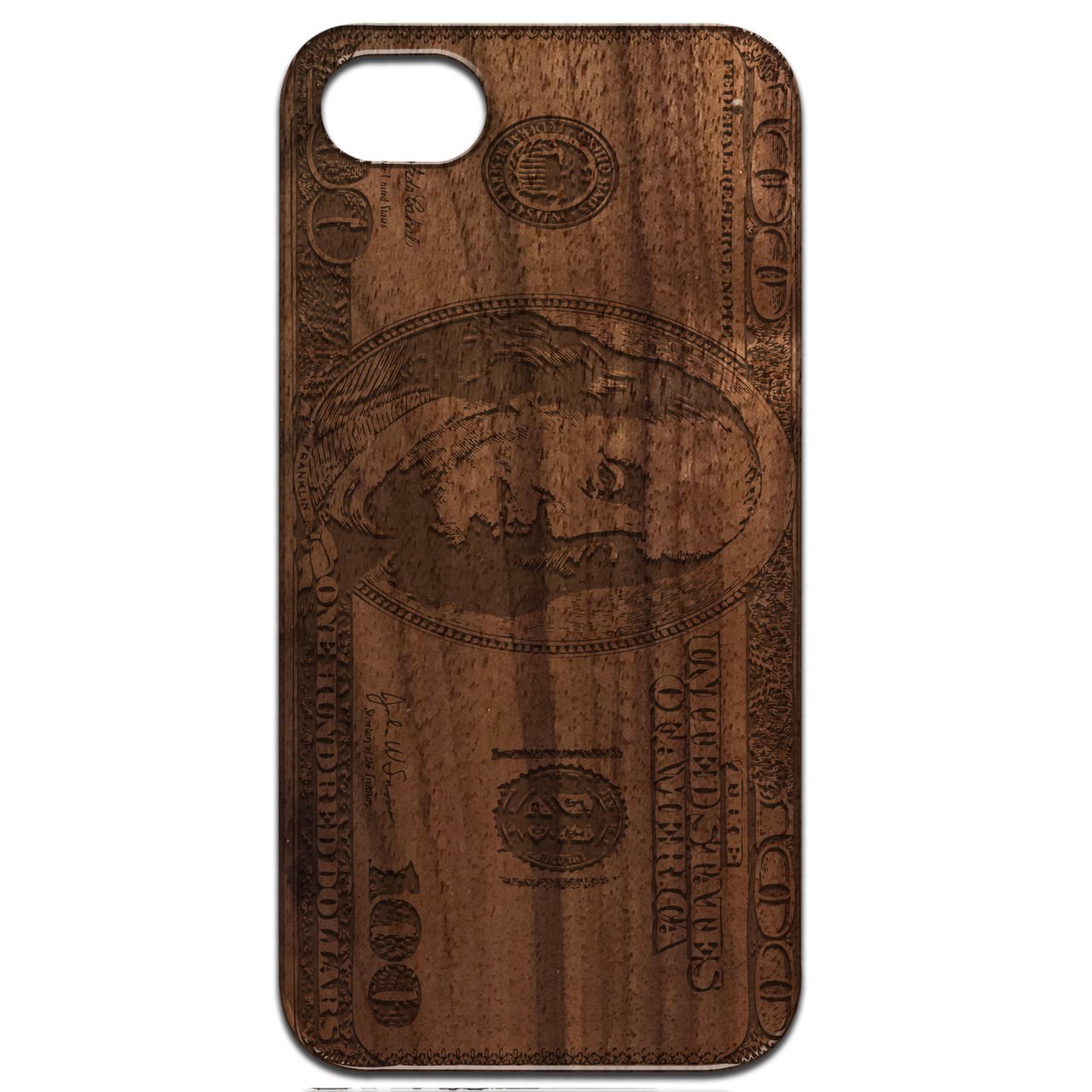 The Hundred Dollar Bill - Engraved wooden phone case is a perfect blend of style and functionality. Crafted by OTTO-CASE, a leader in wooden cellular cases, this product not only protects your device but also showcases a unique aesthetic appeal. With its intricate laser-engraved design, this case is sure to turn heads while keeping your phone safe from everyday wear and tear.