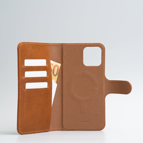 The iPhone 12/13 series Full-Grain Leather Folio Case Wallet with MagSafe is the perfect blend of style and functionality. Handcrafted from premium full-grain vegetable-tanned leather sourced from an Italian tannery, this folio wallet not only protects your device but also elevates your everyday carry. With its sleek design and luxurious feel, it is an essential accessory for any iPhone user.