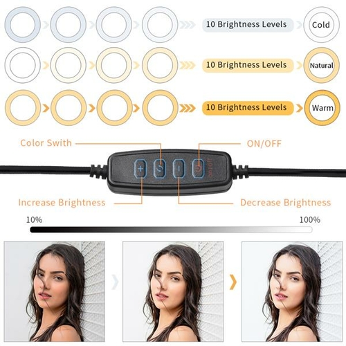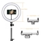 Are you looking for a portable and practical ring light? If so, you can't miss this 10-inch Ring Light (with PTZ Clip) 50cm Small Floor Lamp Stand Set, which is featured with extremely long lifespan, low energy consumption, high light efficiency and environment protection. And it's also covered with durable material, offering it a complete protection and perfect heat dissipation. Moreover, our LED ring light can give out bright and pure light to protect your eyes and make the environment around you more romantic and safer.