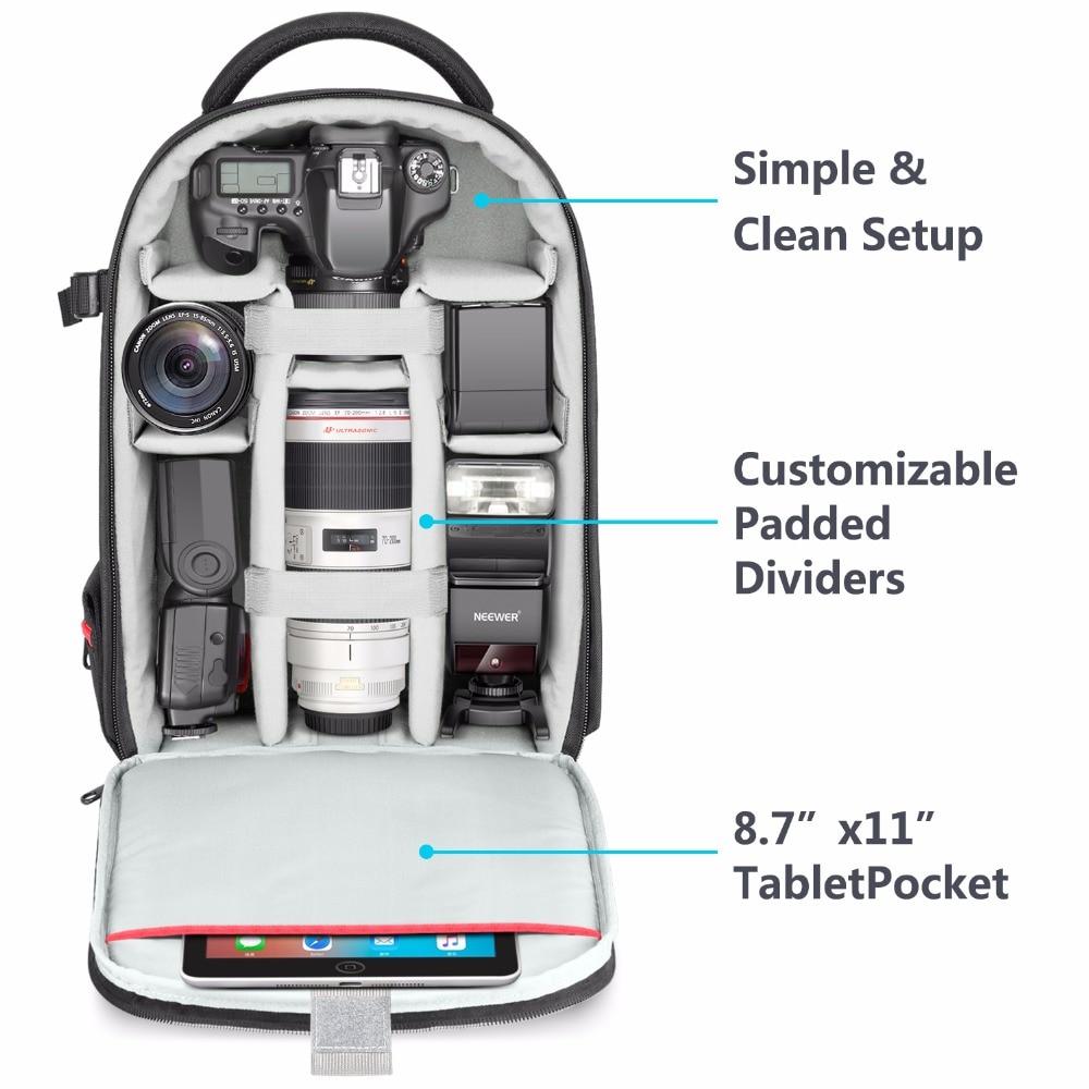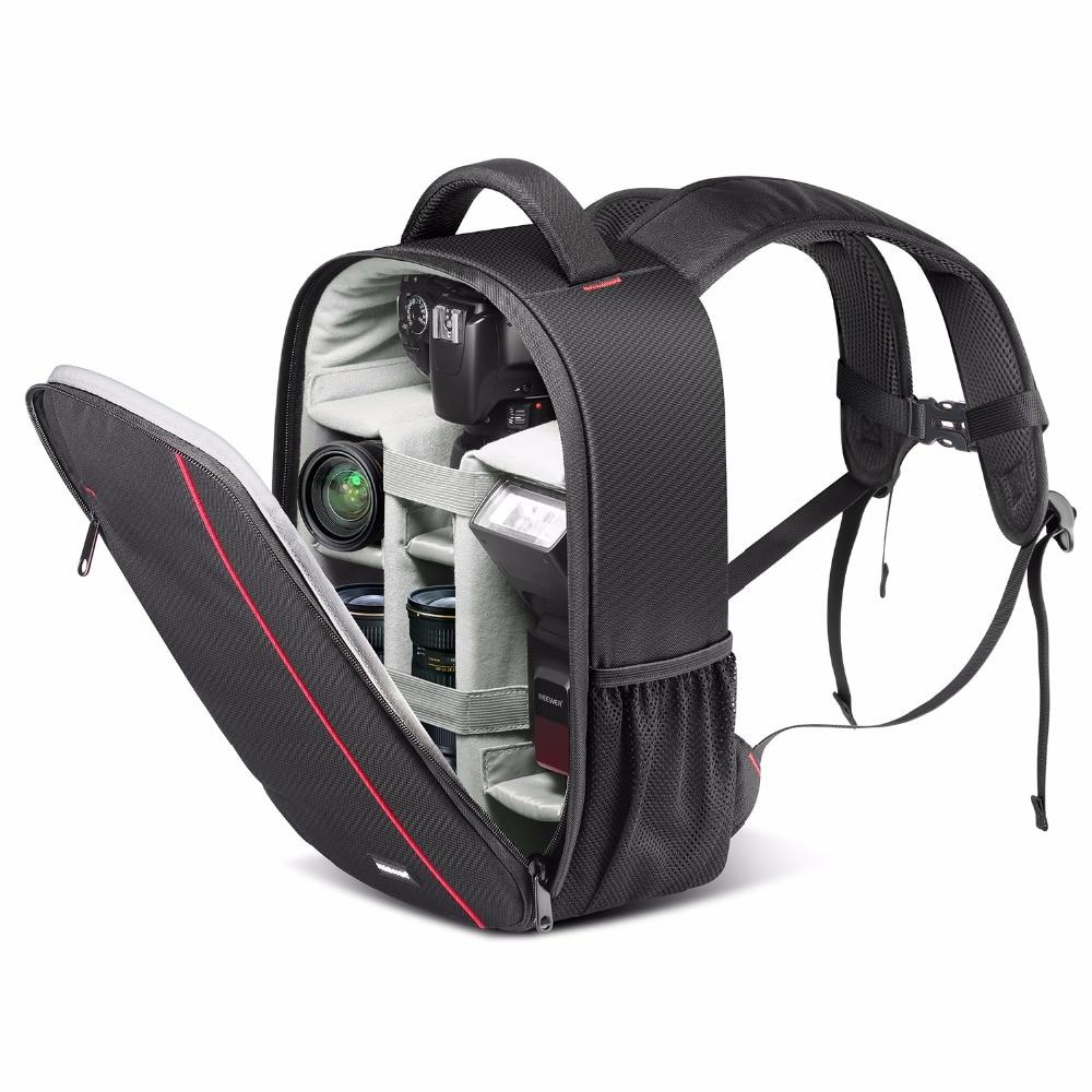 This camera case backpack is specifically designed to accommodate both 14.6-inch and 16.5-inch DSLR cameras, making it versatile for various models. The padded interior ensures that your camera and lenses are shielded from bumps and drops, while the weather-resistant exterior protects against rain and moisture. Whether you're hiking through rugged terrain or navigating city streets, this backpack is built to withstand the elements.