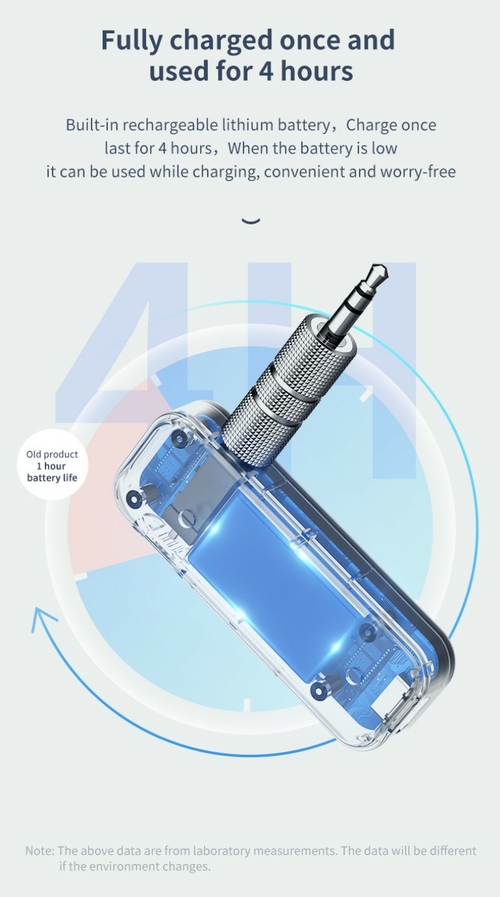 *Connect to the TV’s 3.5mm audio interface, and transmit the sound to the headset via Bluetooth, so you are not afraid to disturb your family when watching movies at night