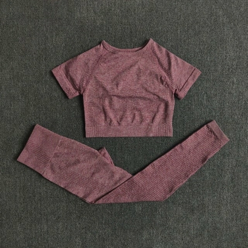 The Seamless Women Yoga Set features a variety of sleeve lengths, including full, short, and sleeveless options, catering to your personal style and comfort preferences. The high-waisted leggings provide excellent support and coverage, ensuring you feel confident during any activity. Available in a range of colors such as wine, blue, black, pink, purple, and gray, you can mix and match to create your perfect workout outfit.
