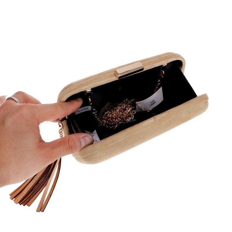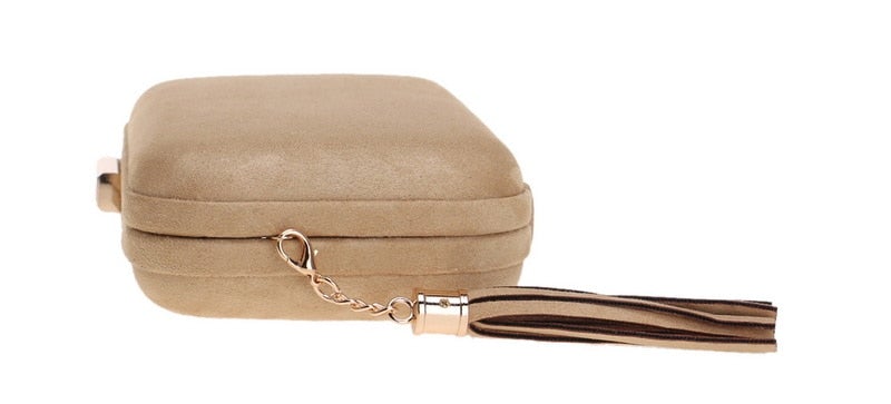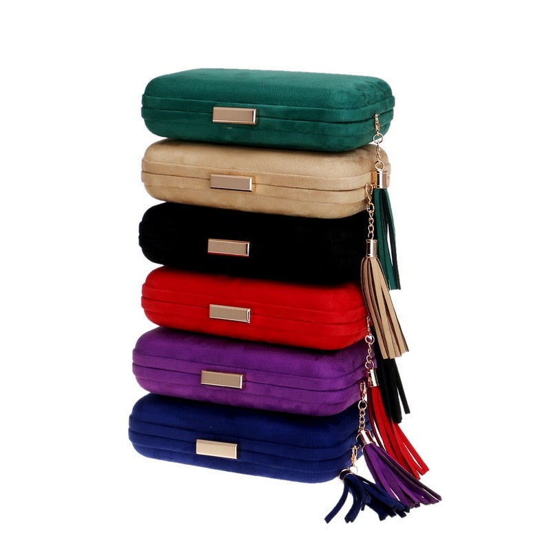 Featuring a chic flap shape, the Arrival Women Evening Bag stands out with its solid pattern and fashionable design. The luxurious velvet fabric adds a touch of sophistication, while the tassel decoration enhances its overall aesthetic. This bag is designed to make a statement, ensuring you turn heads wherever you go.