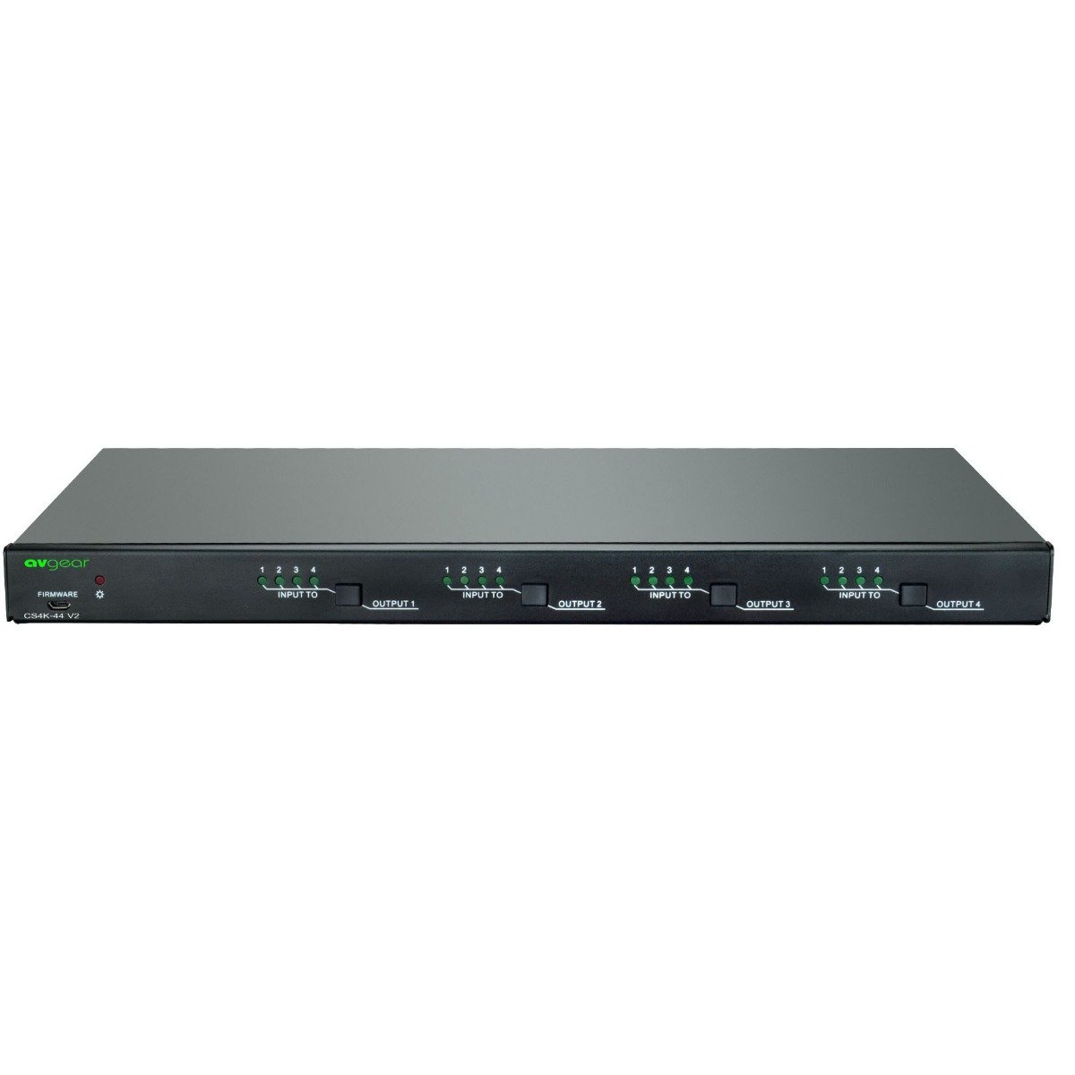 Additionally, the AVGear AVG-CS4K-44-V2 supports bi-directional IR and RS232 control, enhancing its usability in complex setups. The built-in GUI for TCP/IP control further simplifies the management of the system, making it user-friendly for both tech-savvy individuals and those less familiar with technology.