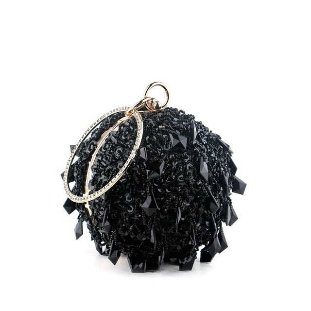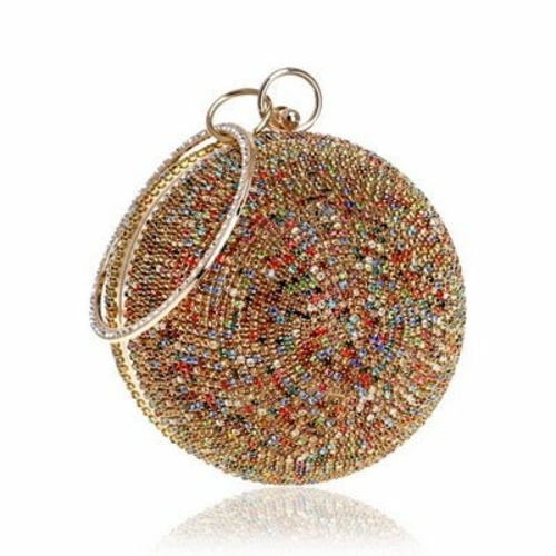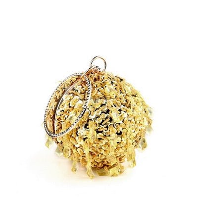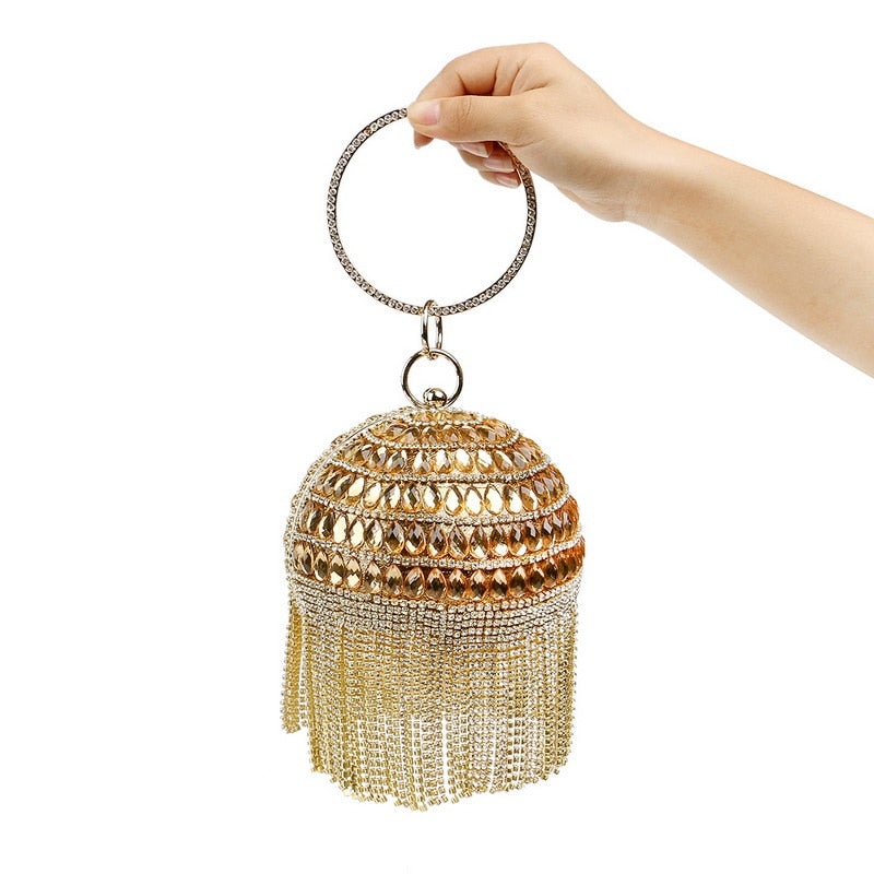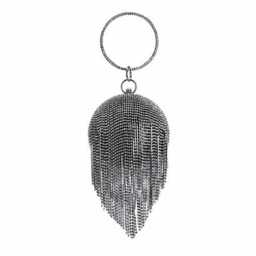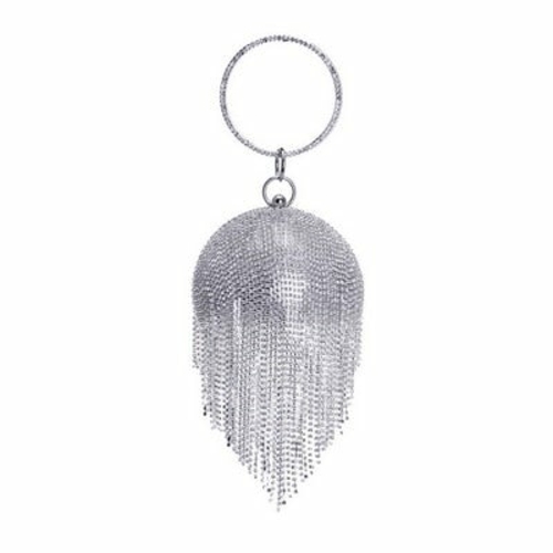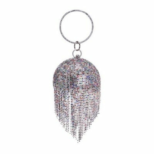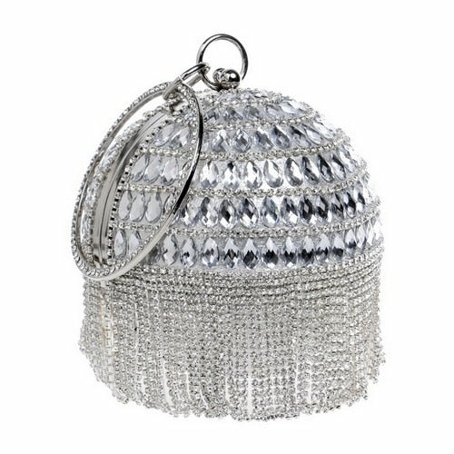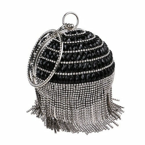 Introducing the exquisite Ball Diamond Tassel Women Party Metal Crystal Clutch, a must-have accessory for any fashionable woman. This stunning evening bag is designed to elevate your look, making it perfect for parties, weddings, and other special occasions. With its unique circular shape and luxurious embellishments, this clutch is sure to turn heads and make a statement.