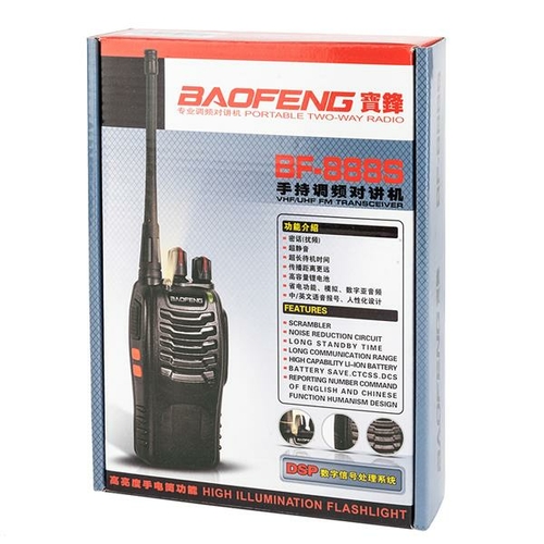 Come to carry a walkie talkie with you to rest assured emergencies! This BaoFeng BF-888S 5W 400-470MHz Handheld Walkie Talkie/Interphone Black must be your honest friend! Adopting precise and sophisticated electronic components, it is stable in performance and reliable in receiving signal even in remote mountainous regions or dense forest. Built-in 2800mAh battery, it can keep working for quite a long time. With simple and elegant design, it can be used on many occasions, such as airports, manufacturing plants, concerts, etc. Just make a decision now!